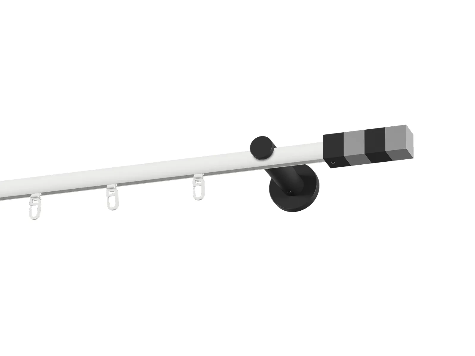 Jednoradová drážková garniža s povrchovou úpravou - bielo čierna lakovaná. Garniže sú dodávané sú v kompletoch. Tvar koncovky a typ držiaka podľa zadaného výberu.