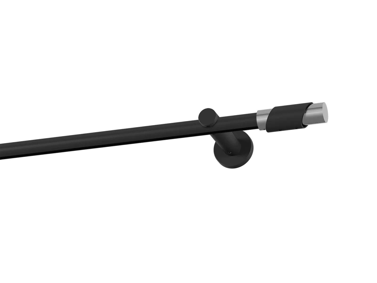 Jednoradová drážková garniža s povrchovou úpravou - čierna lakovaná. Garniže sú dodávané sú v kompletoch. Tvar koncovky a typ držiaka podľa zadaného výberu.