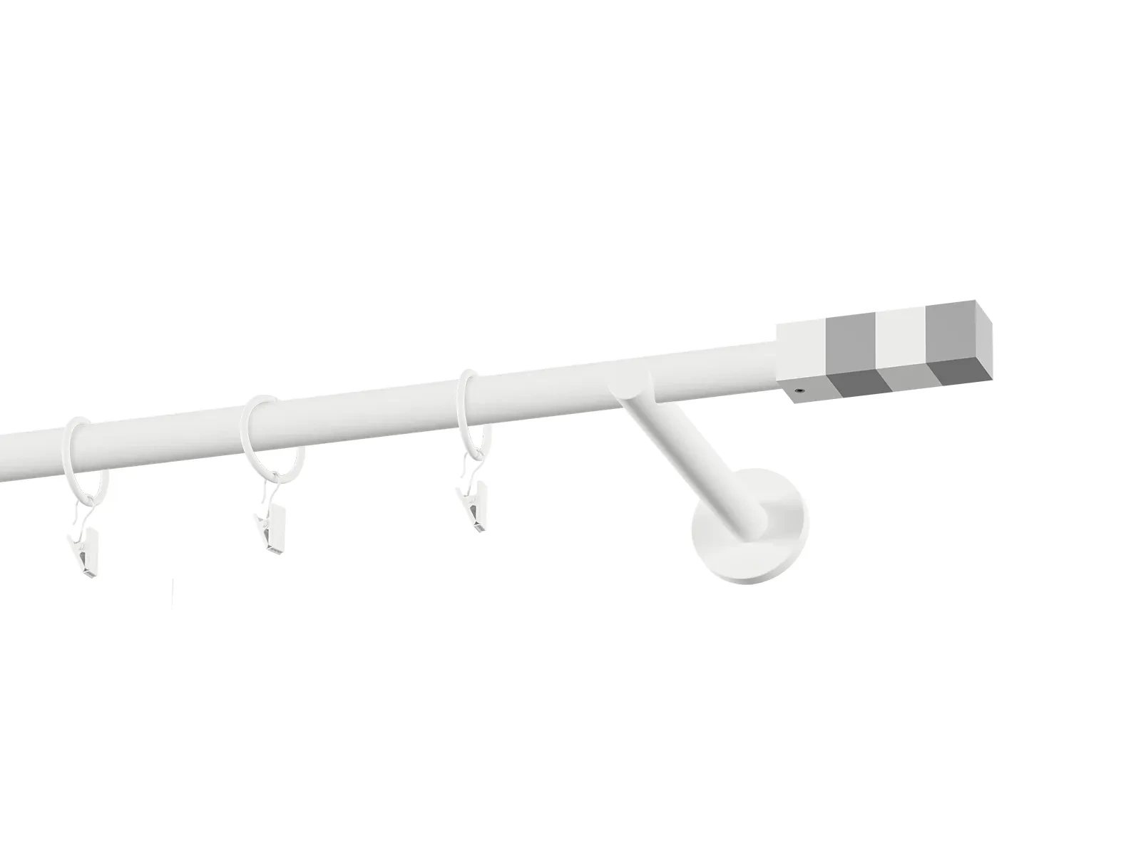 Jednoradová garniža s povrchovou úpravou - biela lakovaná. Garniže sú dodávané sú v kompletoch. Tvar koncovky a typ držiaka podľa zadaného výberu.