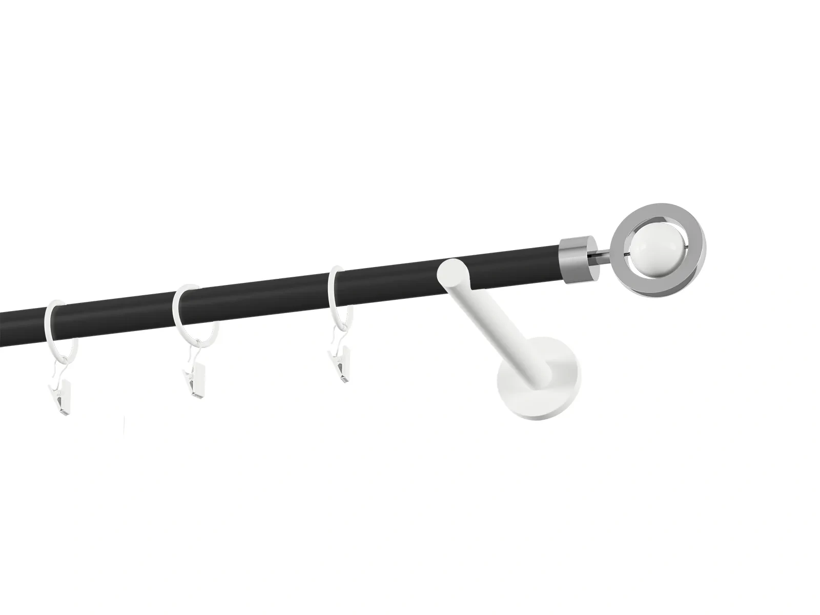 Jednoradová garniža s povrchovou úpravou - čierno biela lakovaná. Garniže sú dodávané sú v kompletoch. Tvar koncovky a typ držiaka podľa zadaného výberu.
