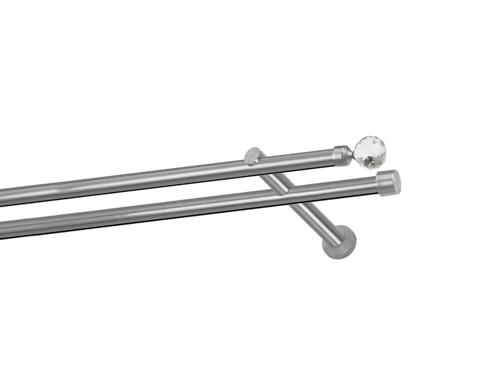 Dvojradová garniža s povrchovou úpravou - odtieň satin-nikel (matné striebro). Celokovové garniže s kvalitnou povrchovou úpravou - galvanické pokovovanie. Galvanické pokovovanie zabezpečuje vyššiu povrchovú tvrdosť, zvýšenú dolnosť voči poškriabaniu, hladký povrch. Dodávané sú v kompletoch.