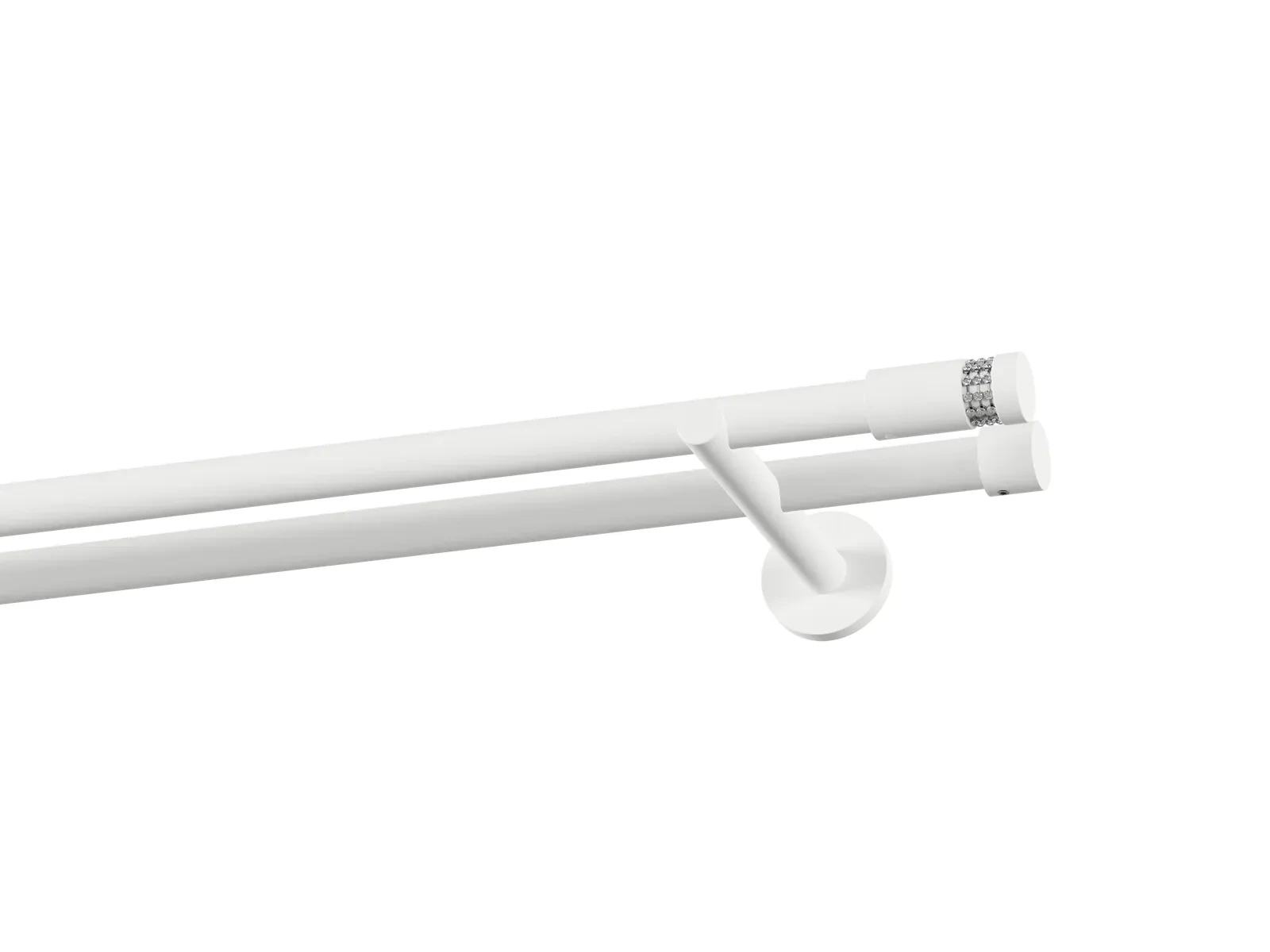 Dvojradová garniža s povrchovou úpravou - biela lakovaná. Garniže sú dodávané sú v kompletoch. Tvar koncovky a typ držiaka podľa zadaného výberu.