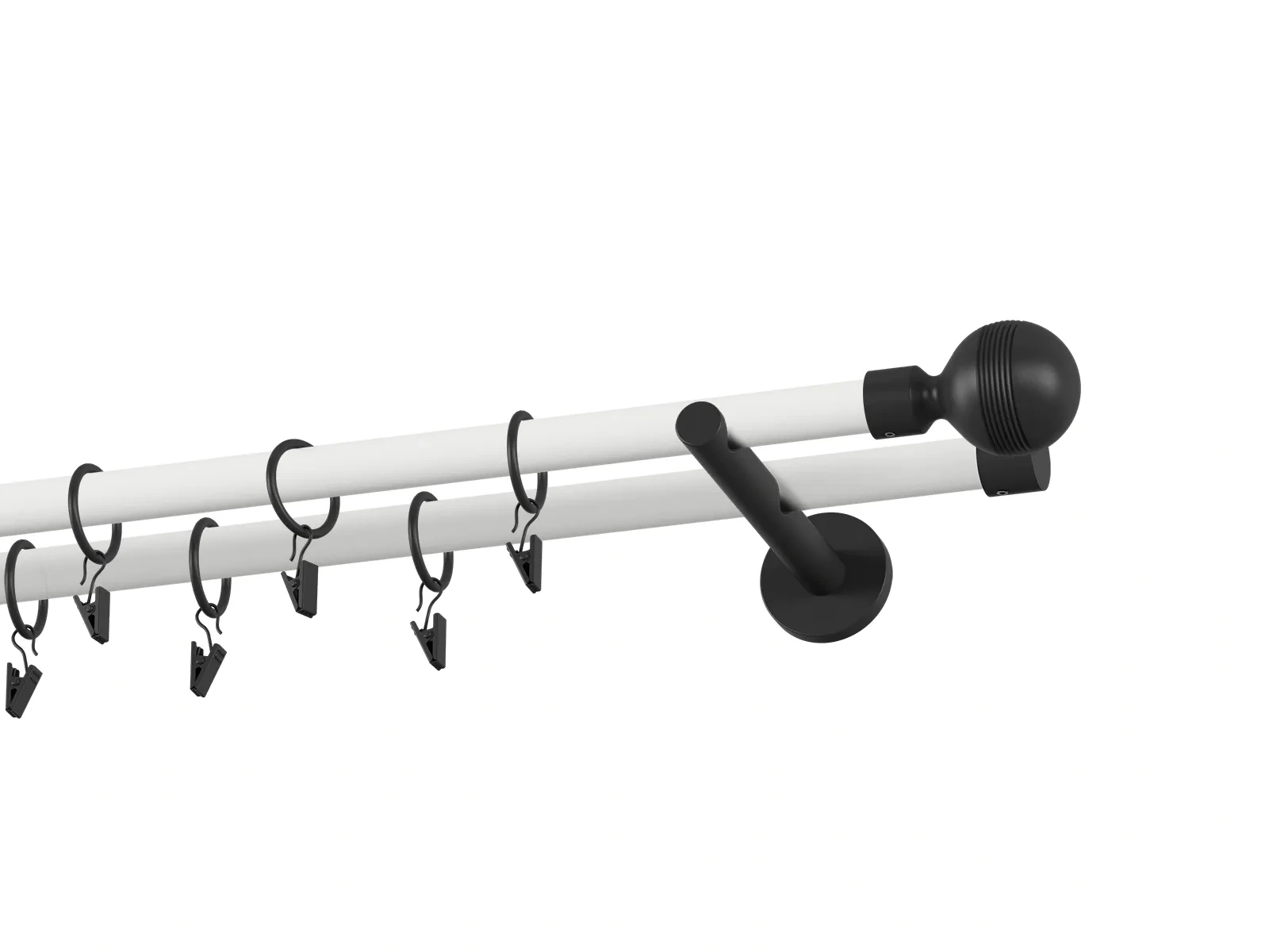 Dvojradová garniža s povrchovou úpravou - bielo čierna lakovaná. Garniže sú dodávané sú v kompletoch. Tvar koncovky a typ držiaka podľa zadaného výberu.