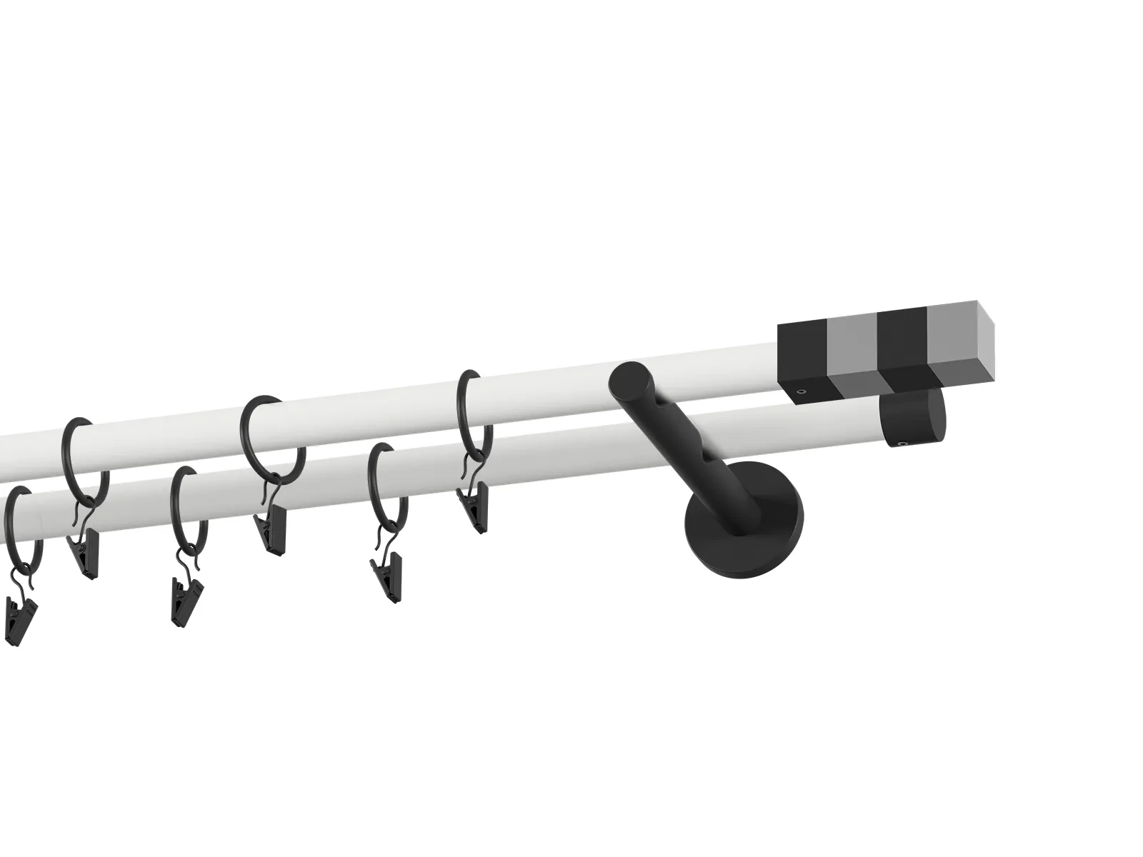 Dvojradová garniža s povrchovou úpravou - bielo čierna lakovaná. Garniže sú dodávané sú v kompletoch. Tvar koncovky a typ držiaka podľa zadaného výberu.
