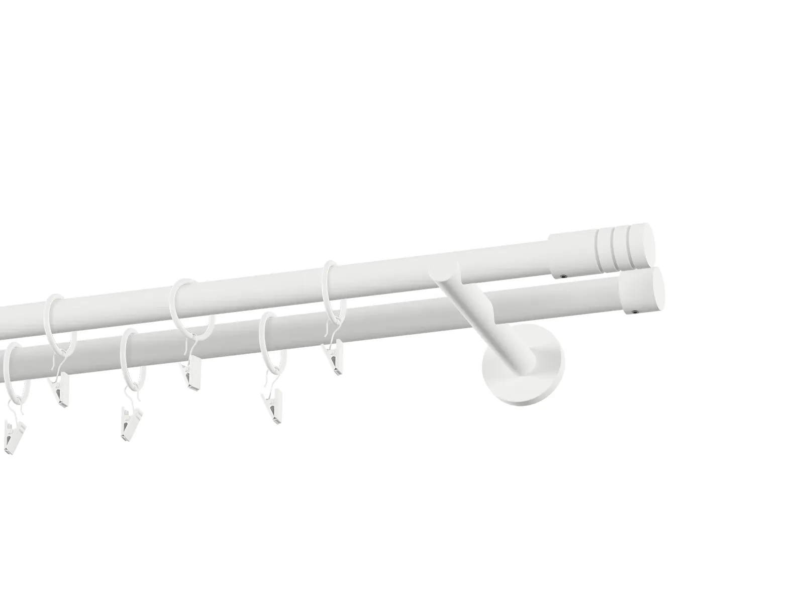 Dvojradová garniža s povrchovou úpravou - biela lakovaná. Garniže sú dodávané sú v kompletoch. Tvar koncovky a typ držiaka podľa zadaného výberu.