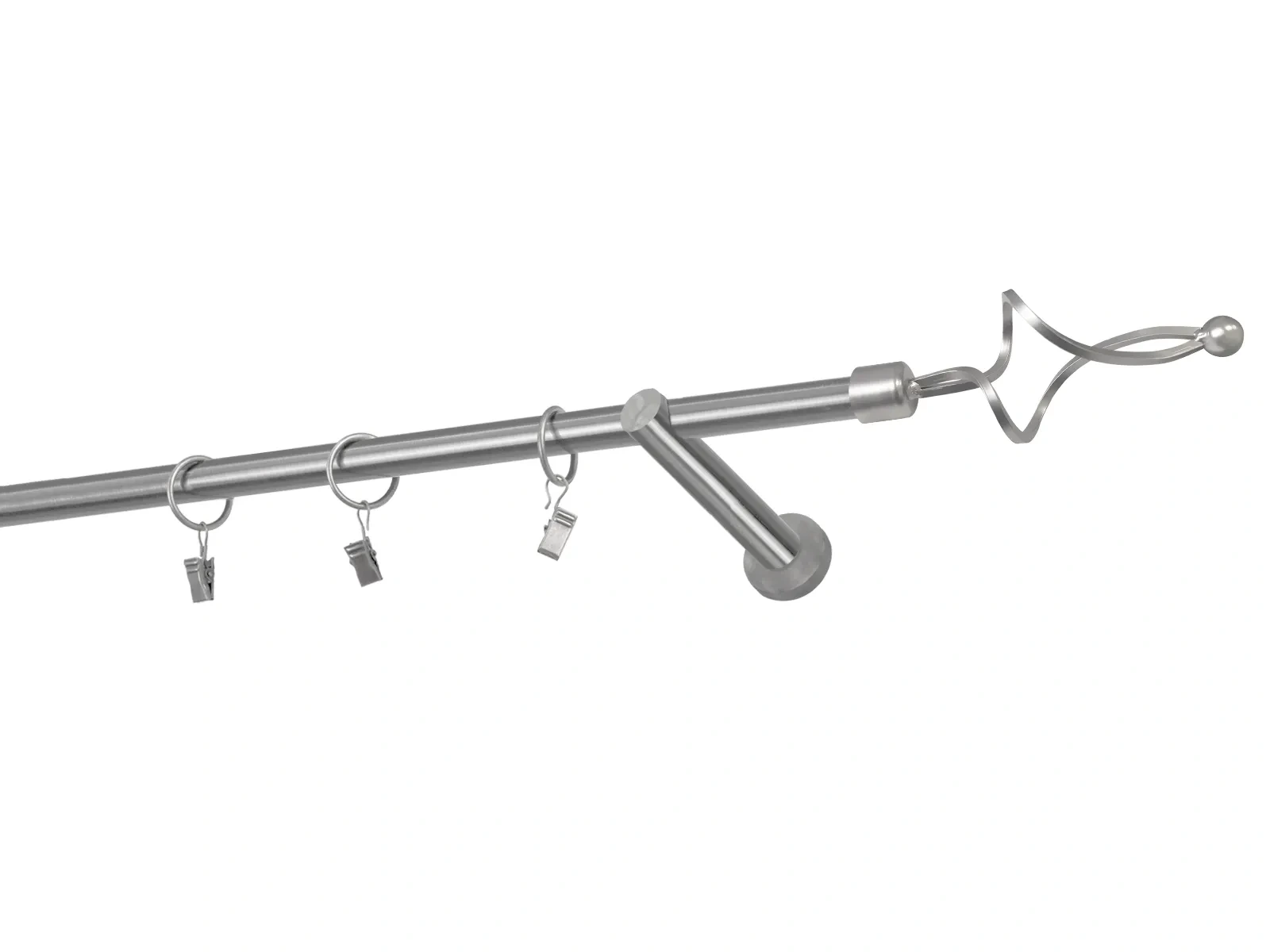 Dĺžka 1600 mm - tyč 16mm - 1600mm - 1ks, držiak - 2ks, koncovka - 2ks, krúžok so štipcom - 15ks (pri výbere parametra príslušenstvo s krúžkami so štipcom), skrutky a hmoždinky na montáž