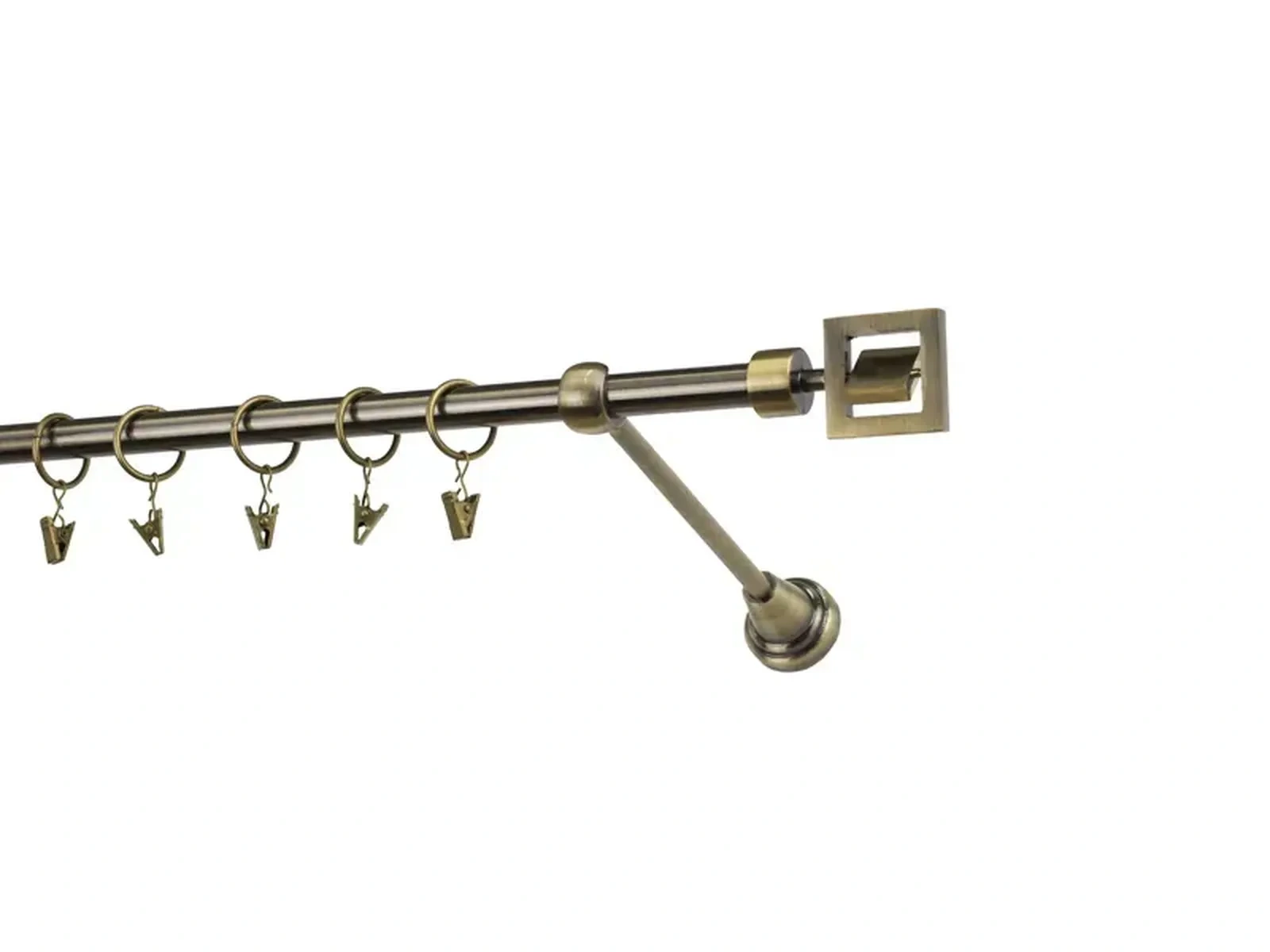Dĺžka 1600 mm - tyč 16mm - 1600mm - 1ks, držiak - 2ks, koncovka - 2ks, krúžok so štipcom - 15ks (pri výbere parametra príslušenstvo s krúžkami so štipcom), skrutky a hmoždinky na montáž