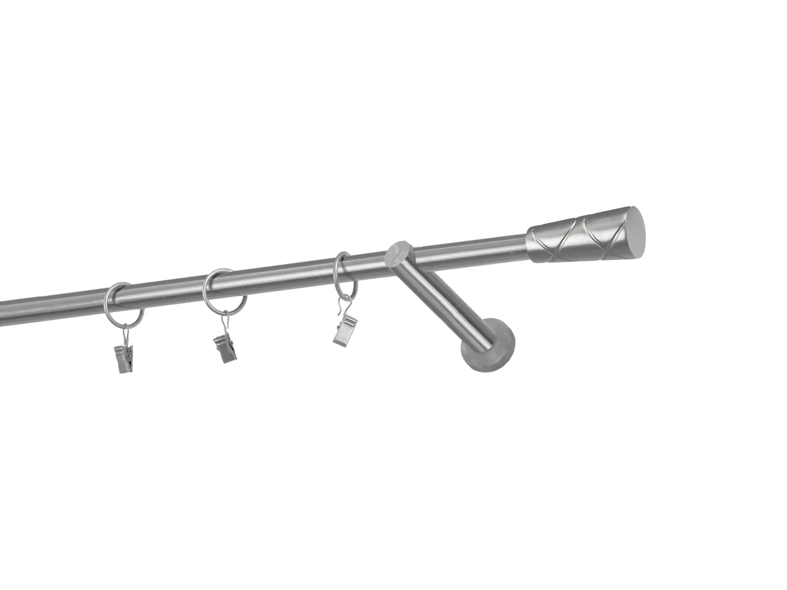 Dĺžka 1200 mm - tyč 16mm - 1200mm - 1ks, držiak - 2ks, koncovka - 2ks, krúžok so štipcom - 11ks (pri výbere parametra príslušenstvo s krúžkami so štipcom), skrutky a hmoždinky na montáž