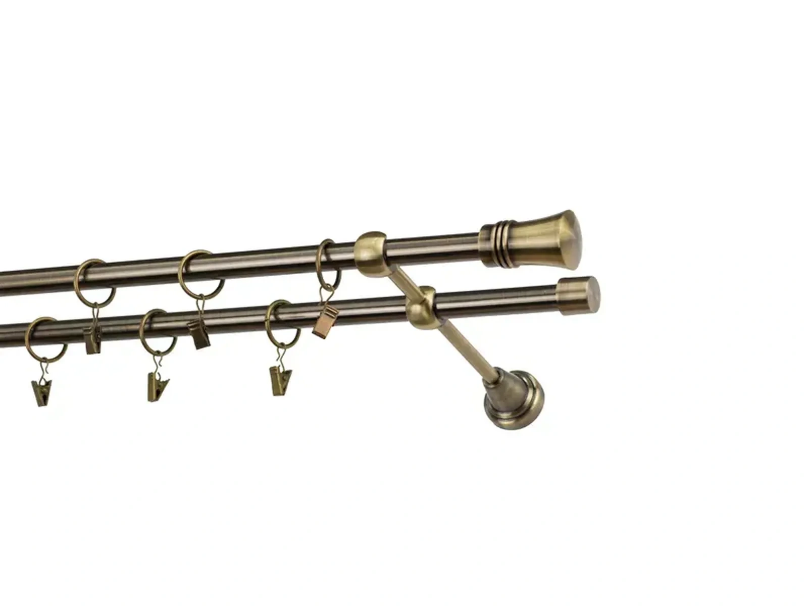 Dvojradová garniža s povrchovou úpravou - odtieň antik (matné zlato). Celokovové garniže s kvalitnou povrchovou úpravou - galvanické pokovovanie. Galvanické pokovovanie zabezpečuje vyššiu povrchovú tvrdosť, zvýšenú dolnosť voči poškriabaniu, hladký povrch. Dodávané sú v kompletoch.