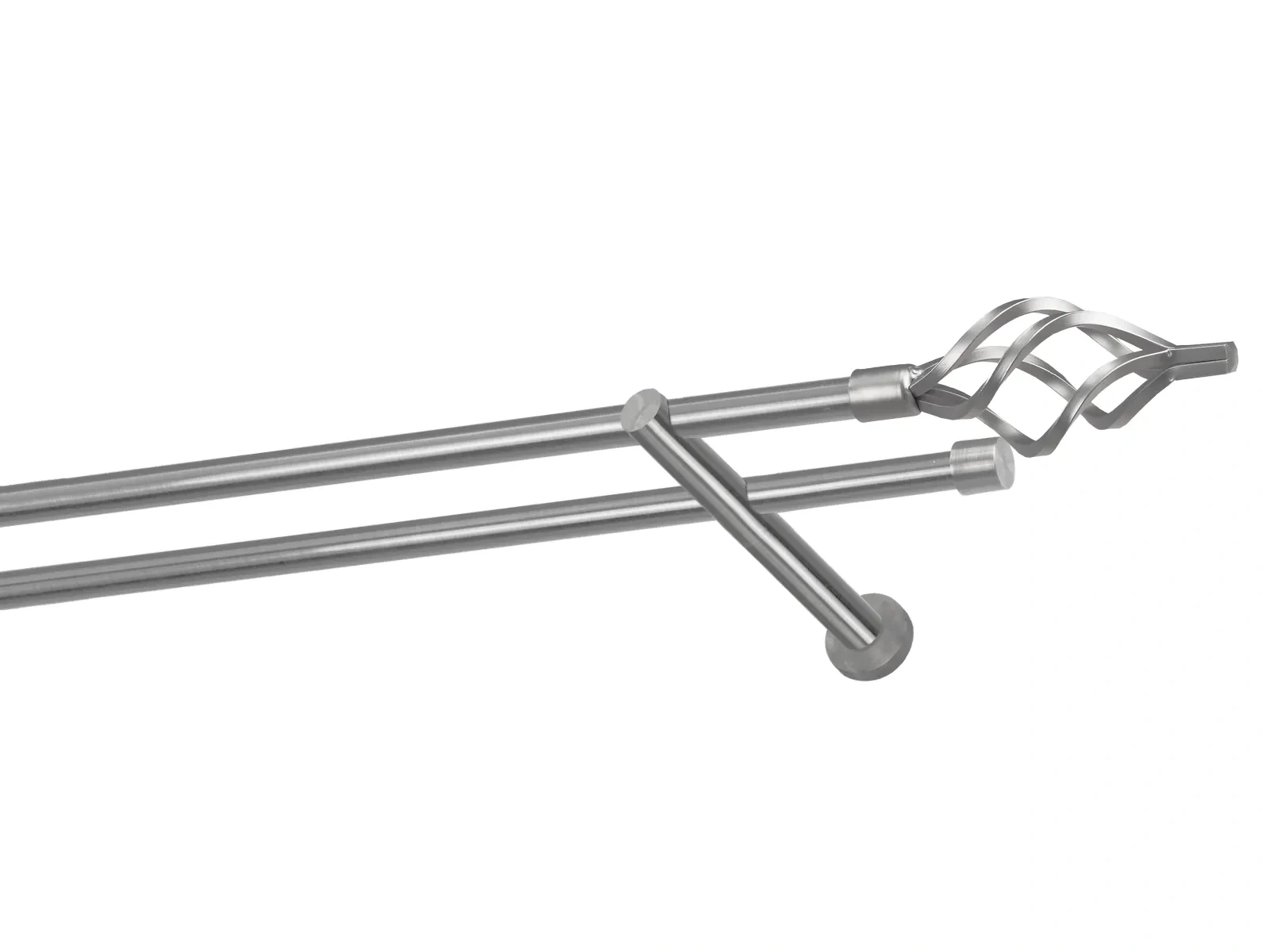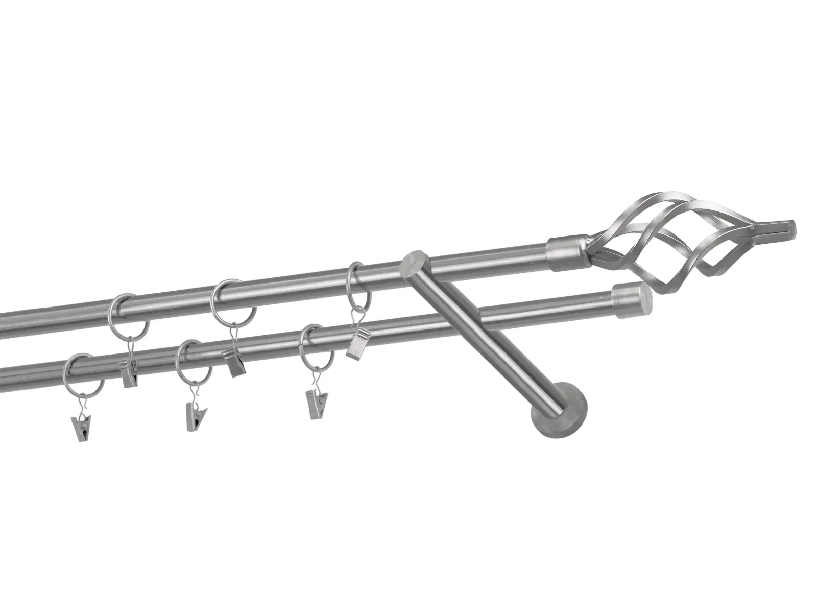 Dvojradová garniža s povrchovou úpravou - odtieň satin-nikel (matné striebro). Celokovové garniže s kvalitnou povrchovou úpravou - galvanické pokovovanie. Galvanické pokovovanie zabezpečuje vyššiu povrchovú tvrdosť, zvýšenú dolnosť voči poškriabaniu, hladký povrch. Dodávané sú v kompletoch.
