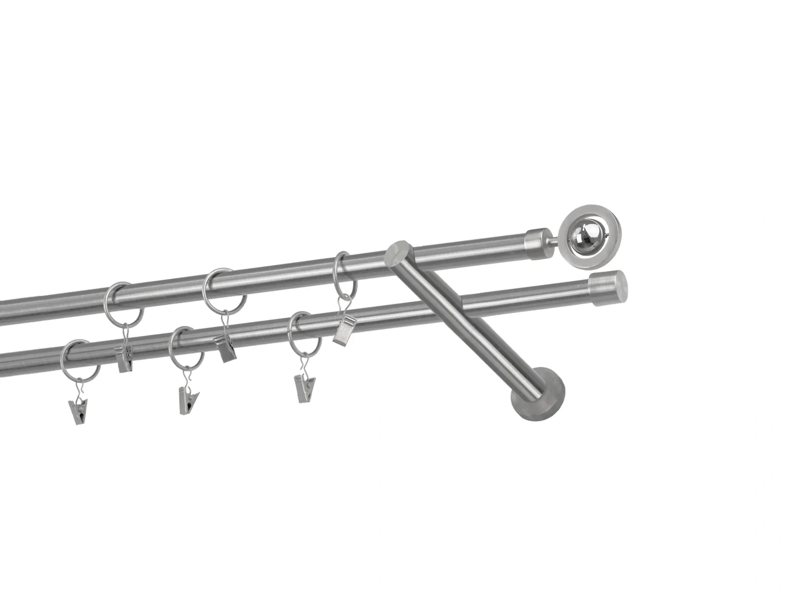 Dĺžka 1200 mm - tyč 16mm - 1200mm - 2ks, držiak dvojitý - 2ks, koncovka - 2ks, koncovka zadná(PULLO) - 2ks, krúžok so štipcom - 22ks (pri výbere parametra príslušenstvo s krúžkami so štipcom), skrutky a hmoždinky na montáž