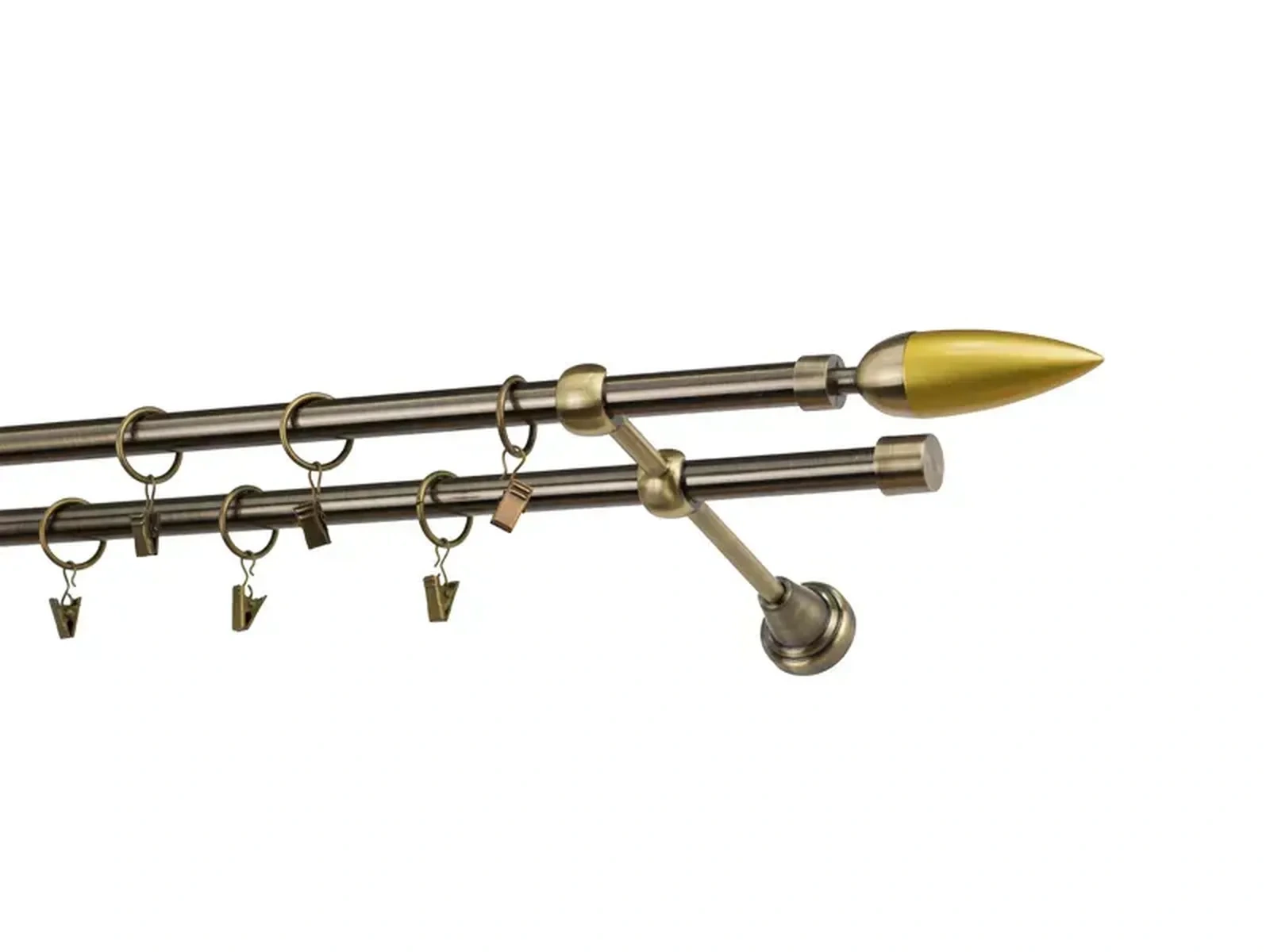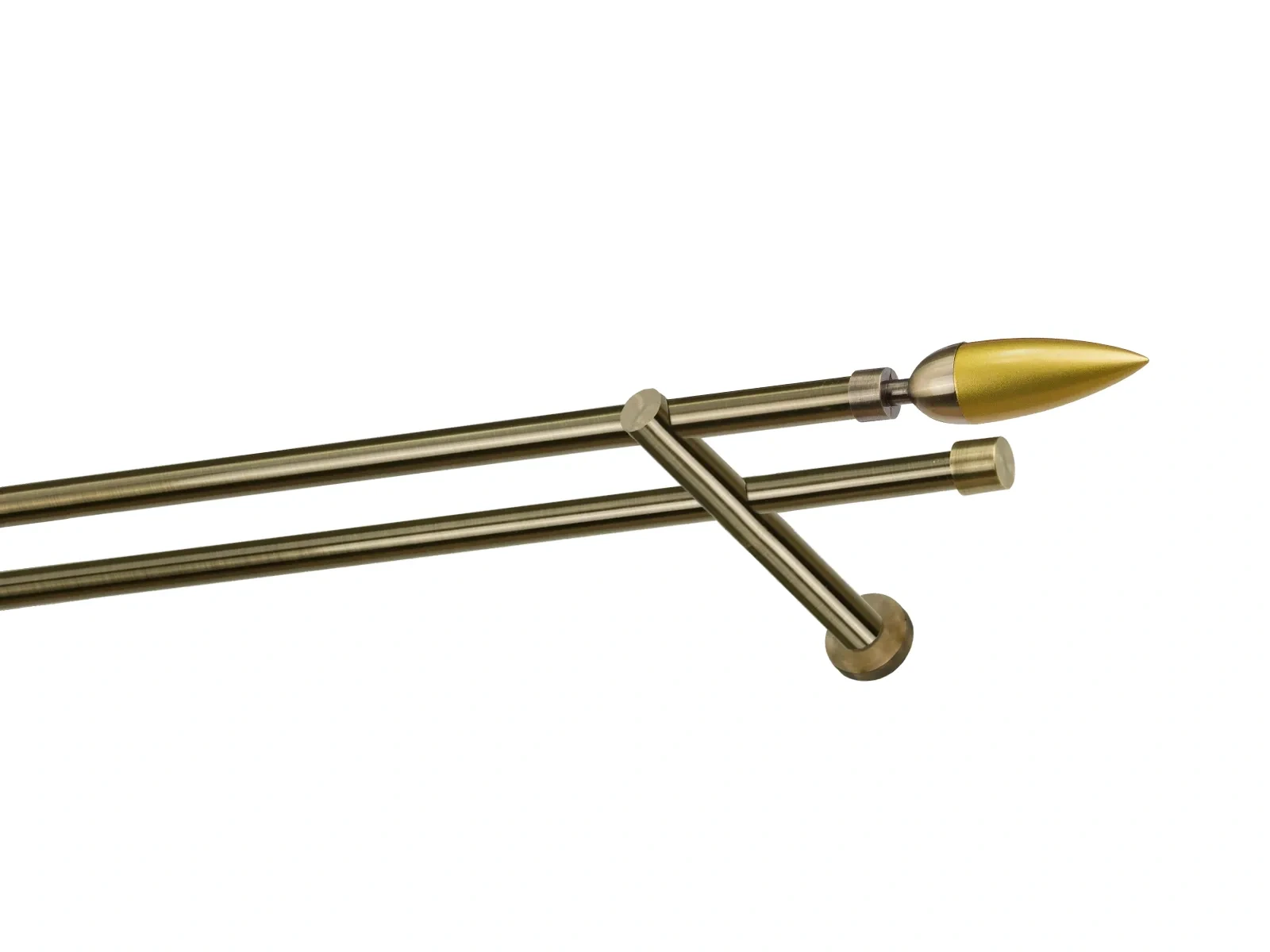 Dvojradová garniža s povrchovou úpravou - odtieň antik (matné zlato). Celokovové garniže s kvalitnou povrchovou úpravou - galvanické pokovovanie. Galvanické pokovovanie zabezpečuje vyššiu povrchovú tvrdosť, zvýšenú dolnosť voči poškriabaniu, hladký povrch. Dodávané sú v kompletoch.