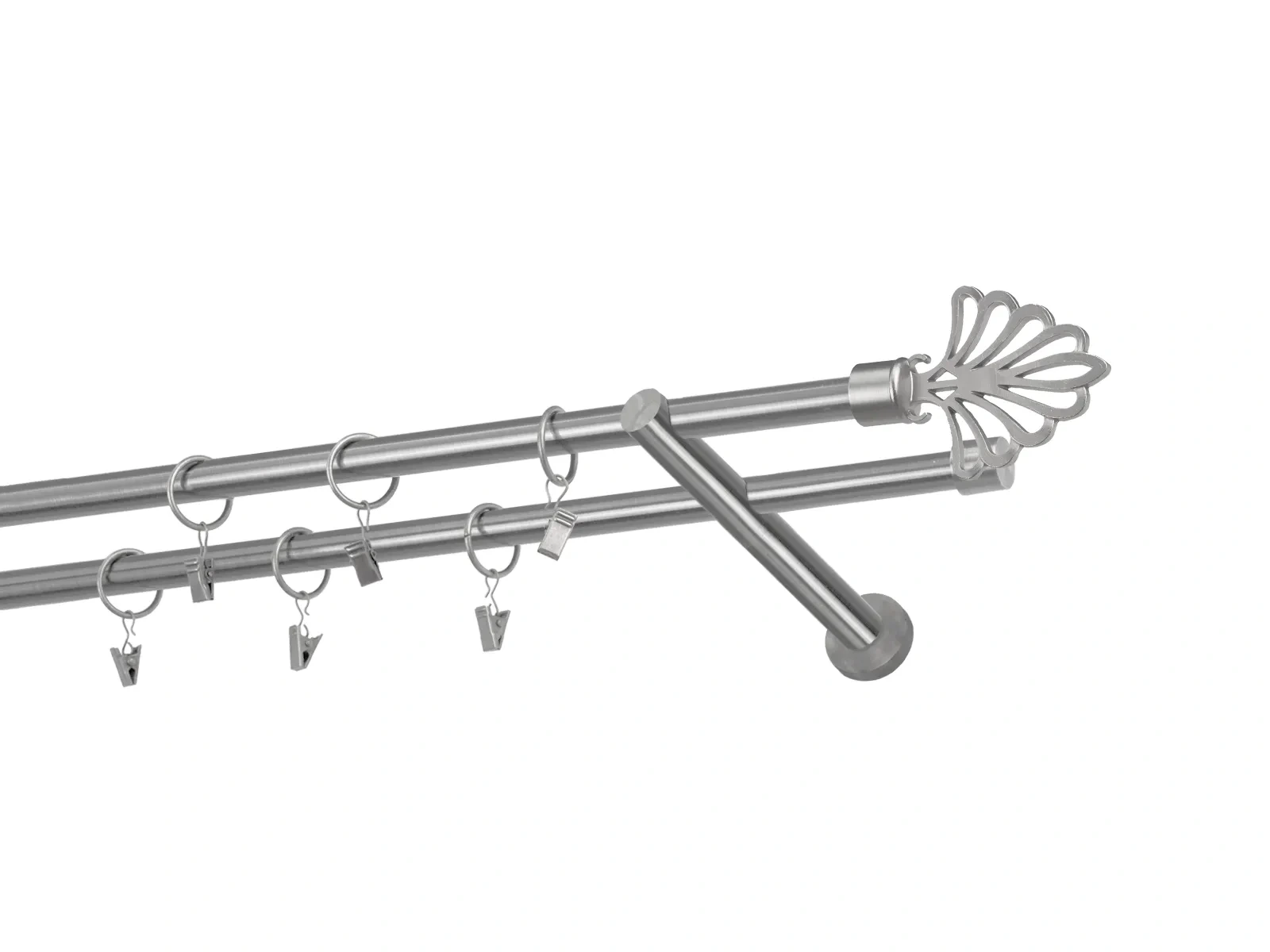 Dĺžka 1600 mm - tyč 16mm - 1600mm - 2ks, držiak dvojitý - 2ks, koncovka - 2ks, koncovka zadná(PULLO) - 2ks, krúžok so štipcom - 30ks (pri výbere parametra príslušenstvo s krúžkami so štipcom), skrutky a hmoždinky na montáž
