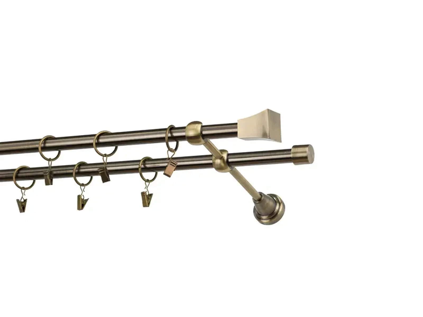 Dvojradová garniža s povrchovou úpravou - odtieň antik (matné zlato). Celokovové garniže s kvalitnou povrchovou úpravou - galvanické pokovovanie. Galvanické pokovovanie zabezpečuje vyššiu povrchovú tvrdosť, zvýšenú dolnosť voči poškriabaniu, hladký povrch. Dodávané sú v kompletoch.