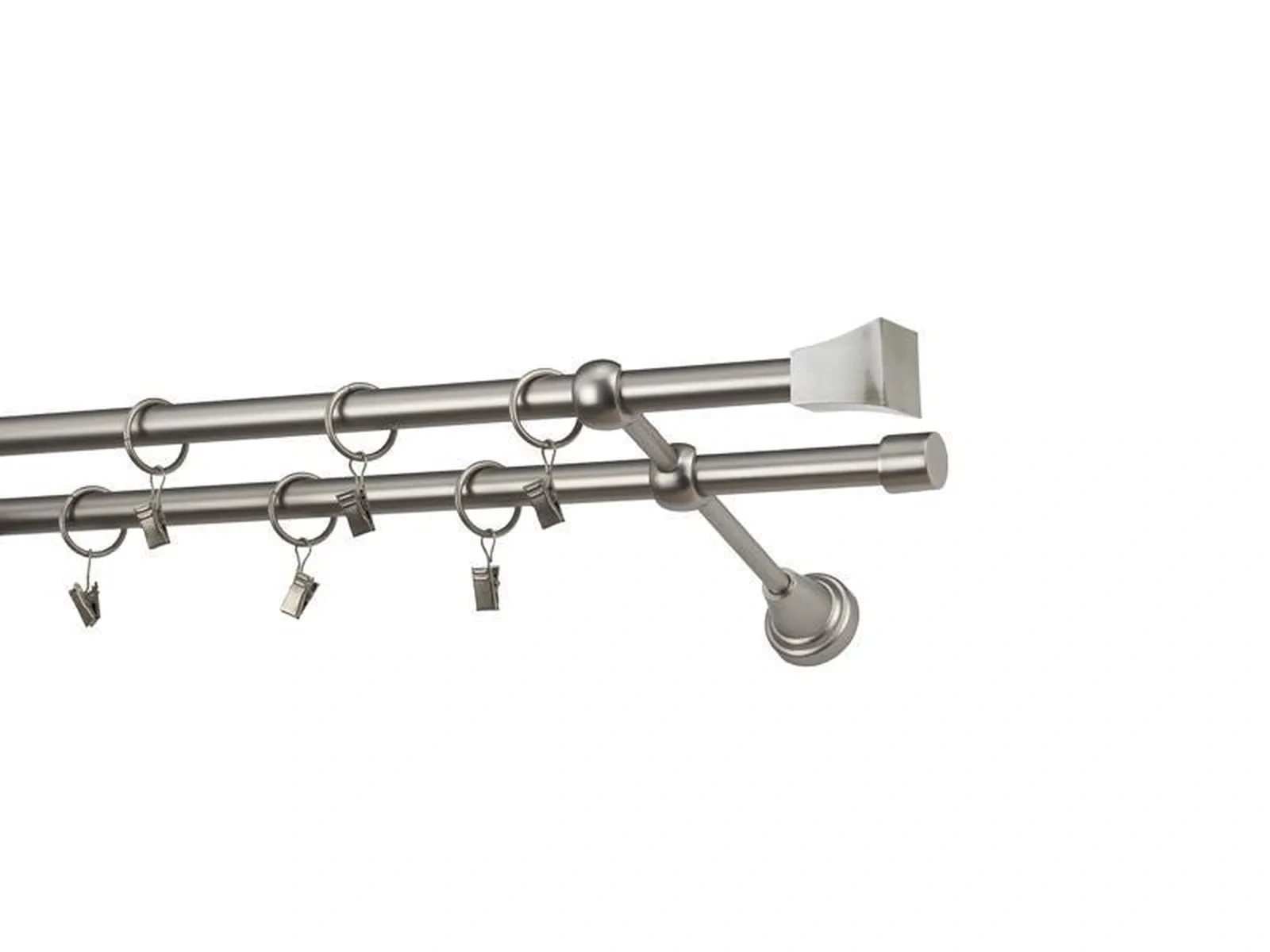 Dvojradová garniža s povrchovou úpravou - odtieň satin-nikel (matné striebro). Celokovové garniže s kvalitnou povrchovou úpravou - galvanické pokovovanie. Galvanické pokovovanie zabezpečuje vyššiu povrchovú tvrdosť, zvýšenú dolnosť voči poškriabaniu, hladký povrch. Dodávané sú v kompletoch.