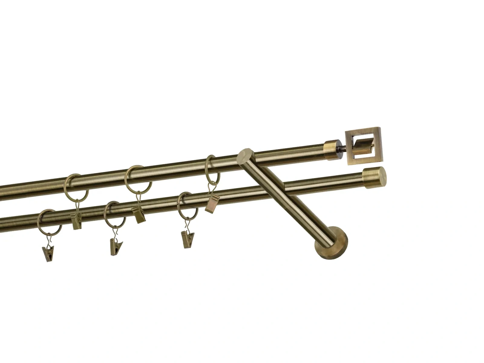Dvojradová garniža s povrchovou úpravou - odtieň antik (matné zlato). Celokovové garniže s kvalitnou povrchovou úpravou - galvanické pokovovanie. Galvanické pokovovanie zabezpečuje vyššiu povrchovú tvrdosť, zvýšenú dolnosť voči poškriabaniu, hladký povrch. Dodávané sú v kompletoch.