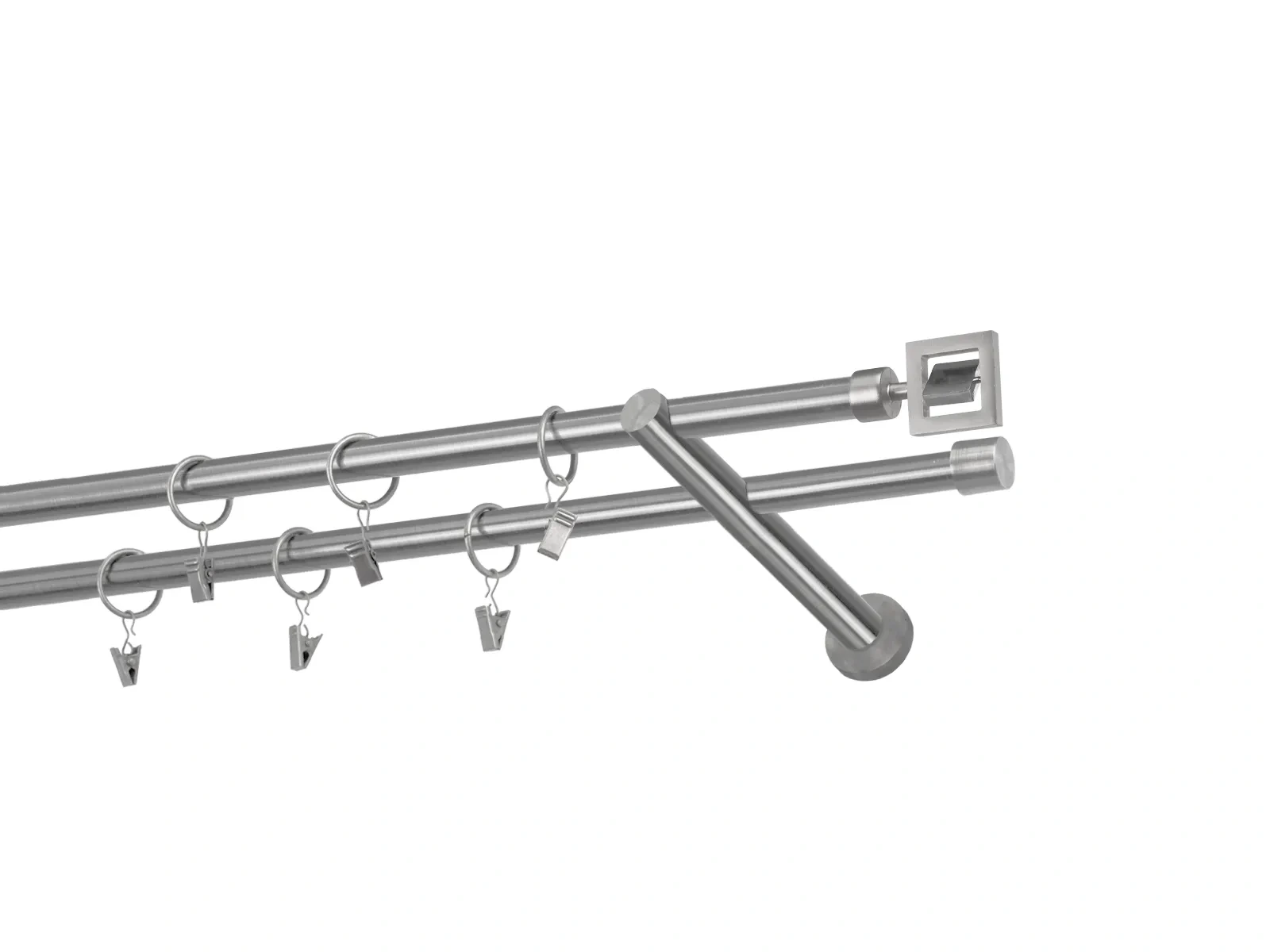 Dvojradová garniža s povrchovou úpravou - odtieň satin-nikel (matné striebro). Celokovové garniže s kvalitnou povrchovou úpravou - galvanické pokovovanie. Galvanické pokovovanie zabezpečuje vyššiu povrchovú tvrdosť, zvýšenú dolnosť voči poškriabaniu, hladký povrch. Dodávané sú v kompletoch.