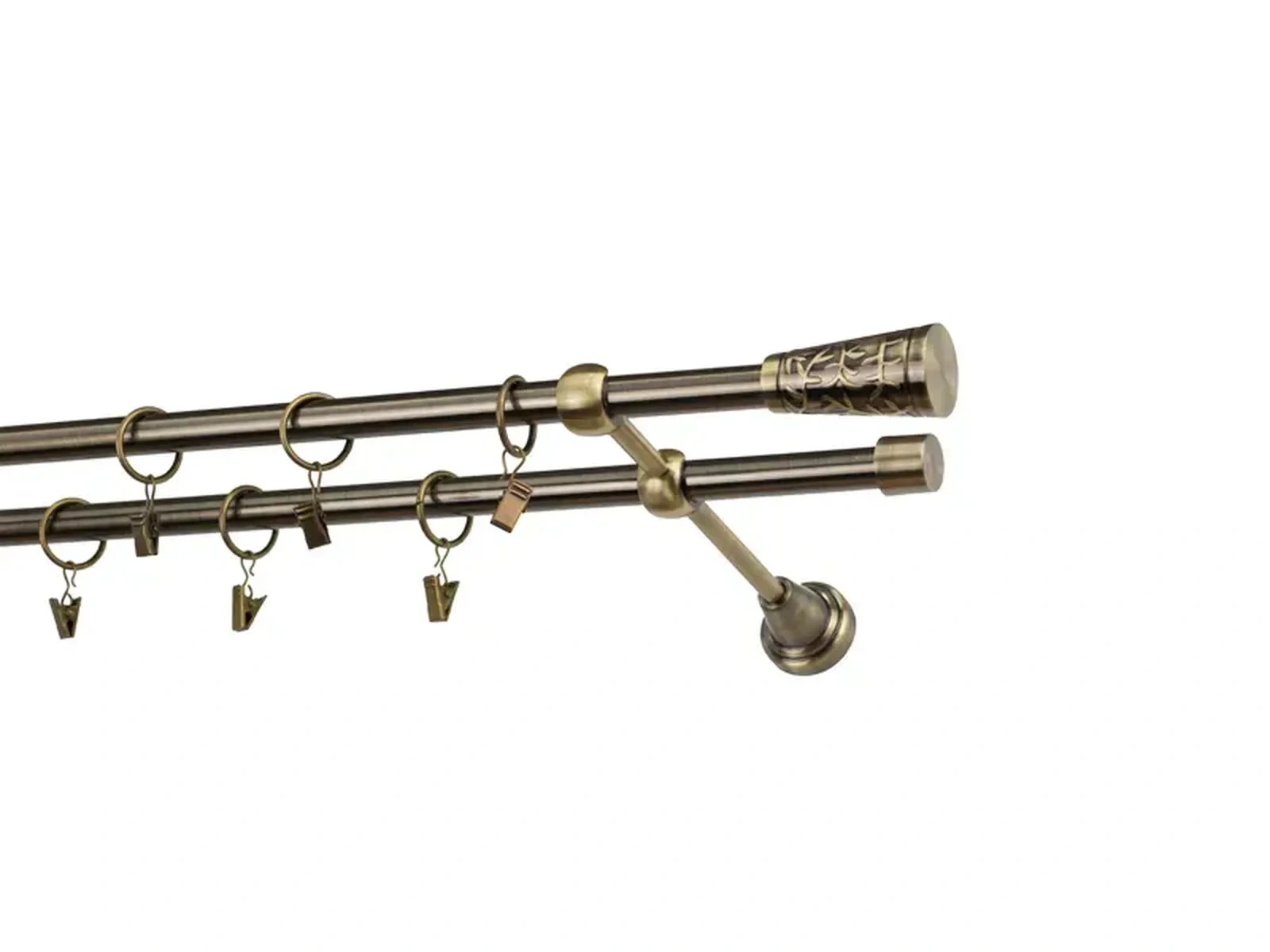 Dvojradová garniža s povrchovou úpravou - odtieň antik (matné zlato). Celokovové garniže s kvalitnou povrchovou úpravou - galvanické pokovovanie. Galvanické pokovovanie zabezpečuje vyššiu povrchovú tvrdosť, zvýšenú dolnosť voči poškriabaniu, hladký povrch. Dodávané sú v kompletoch.