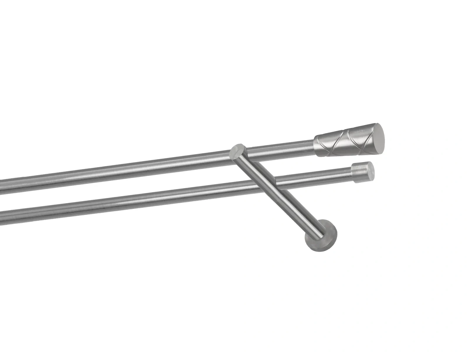 Dvojradová garniža s povrchovou úpravou - odtieň satin-nikel (matné striebro). Celokovové garniže s kvalitnou povrchovou úpravou - galvanické pokovovanie. Galvanické pokovovanie zabezpečuje vyššiu povrchovú tvrdosť, zvýšenú dolnosť voči poškriabaniu, hladký povrch. Dodávané sú v kompletoch.