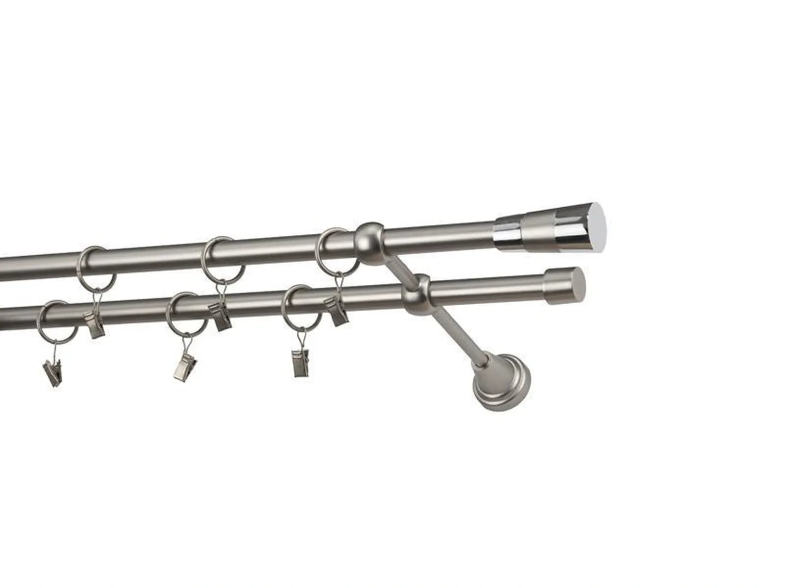 Dvojradová garniža s povrchovou úpravou - odtieň satin-nikel (matné striebro). Celokovové garniže s kvalitnou povrchovou úpravou - galvanické pokovovanie. Galvanické pokovovanie zabezpečuje vyššiu povrchovú tvrdosť, zvýšenú dolnosť voči poškriabaniu, hladký povrch. Dodávané sú v kompletoch.
