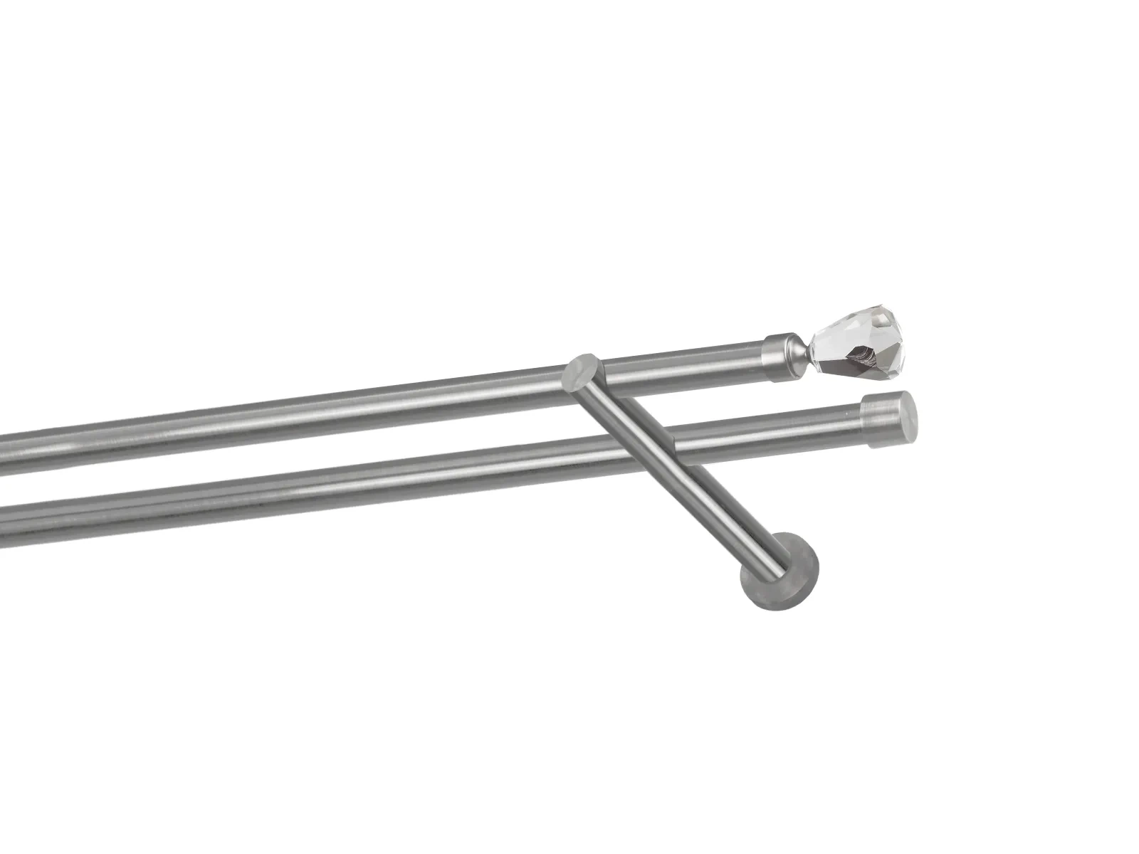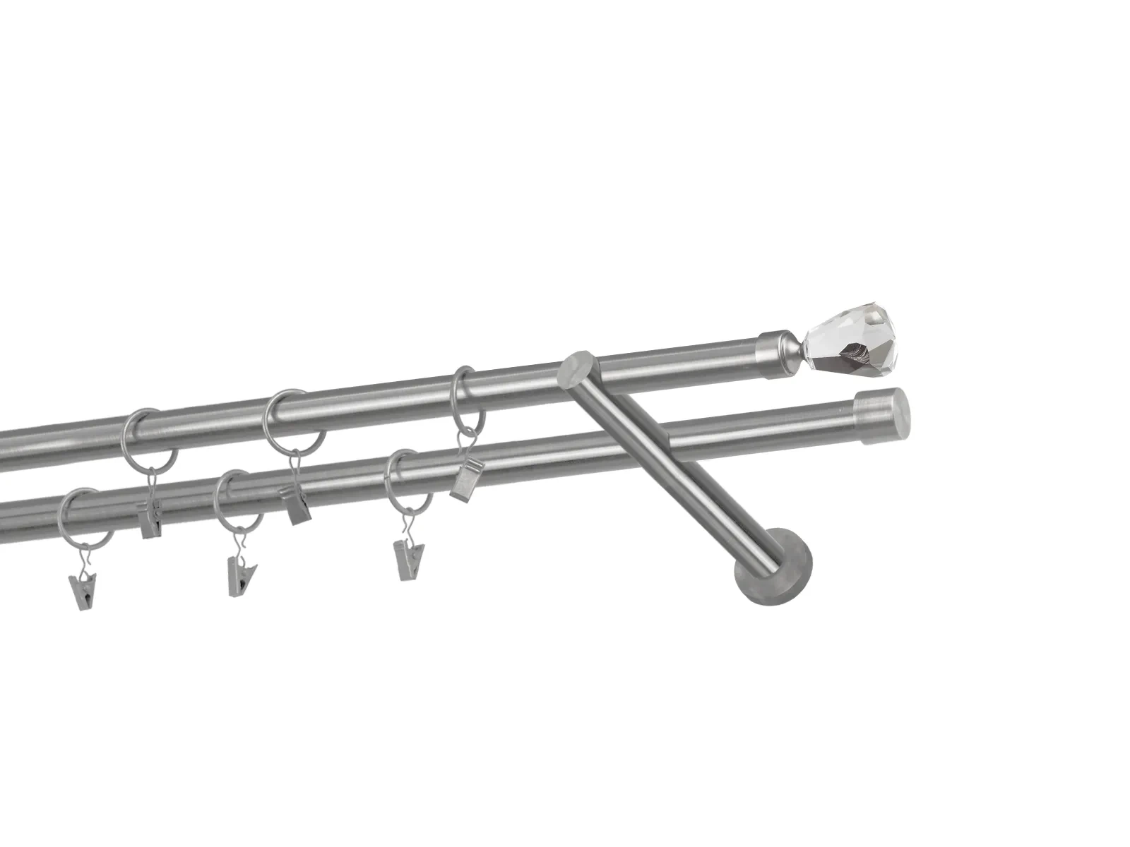 Dvojradová garniža s povrchovou úpravou - odtieň satin-nikel (matné striebro). Celokovové garniže s kvalitnou povrchovou úpravou - galvanické pokovovanie. Galvanické pokovovanie zabezpečuje vyššiu povrchovú tvrdosť, zvýšenú dolnosť voči poškriabaniu, hladký povrch. Dodávané sú v kompletoch.