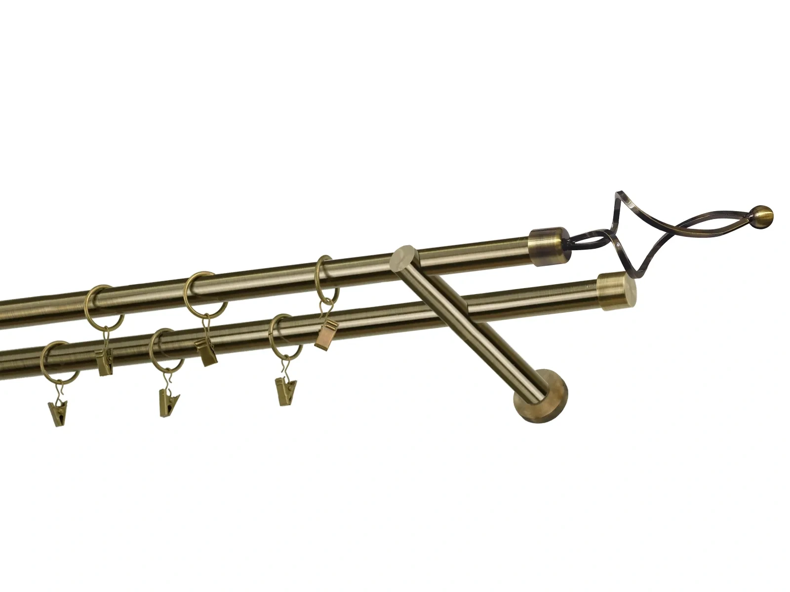Dvojradová garniža s povrchovou úpravou - odtieň antik (matné zlato). Celokovové garniže s kvalitnou povrchovou úpravou - galvanické pokovovanie. Galvanické pokovovanie zabezpečuje vyššiu povrchovú tvrdosť, zvýšenú dolnosť voči poškriabaniu, hladký povrch. Dodávané sú v kompletoch.