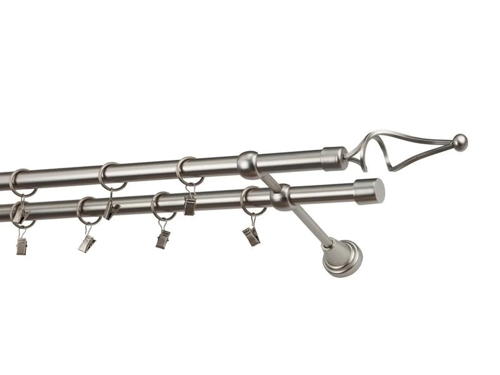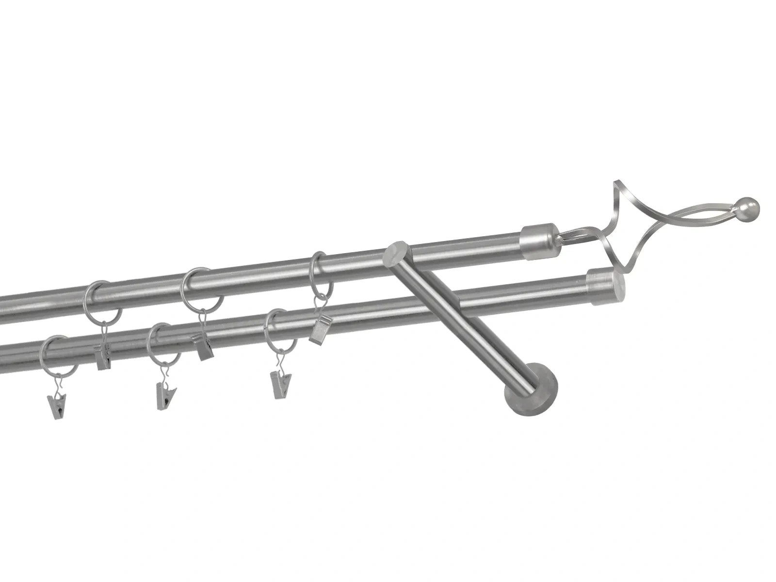 Dvojradová garniža s povrchovou úpravou - odtieň satin-nikel (matné striebro). Celokovové garniže s kvalitnou povrchovou úpravou - galvanické pokovovanie. Galvanické pokovovanie zabezpečuje vyššiu povrchovú tvrdosť, zvýšenú dolnosť voči poškriabaniu, hladký povrch. Dodávané sú v kompletoch.
