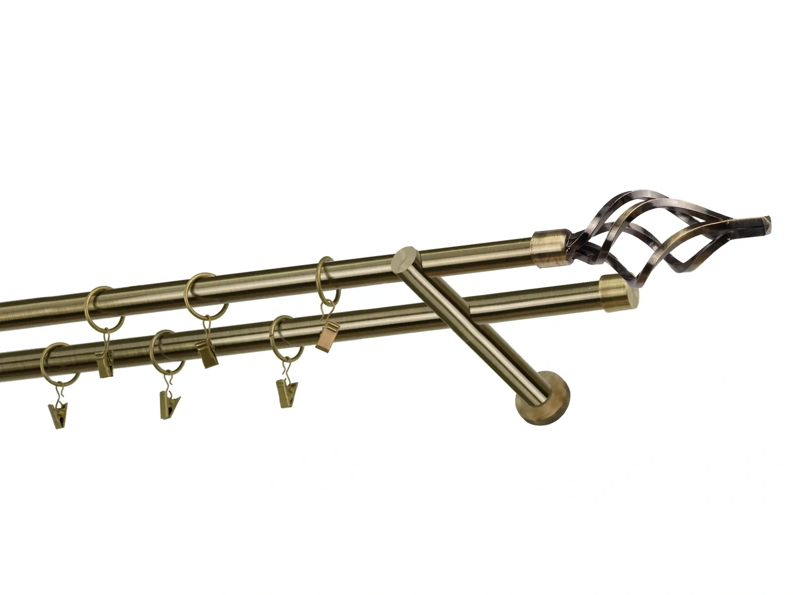 Dvojradová garniža s povrchovou úpravou - odtieň antik (matné zlato). Celokovové garniže s kvalitnou povrchovou úpravou - galvanické pokovovanie. Galvanické pokovovanie zabezpečuje vyššiu povrchovú tvrdosť, zvýšenú dolnosť voči poškriabaniu, hladký povrch. Dodávané sú v kompletoch.