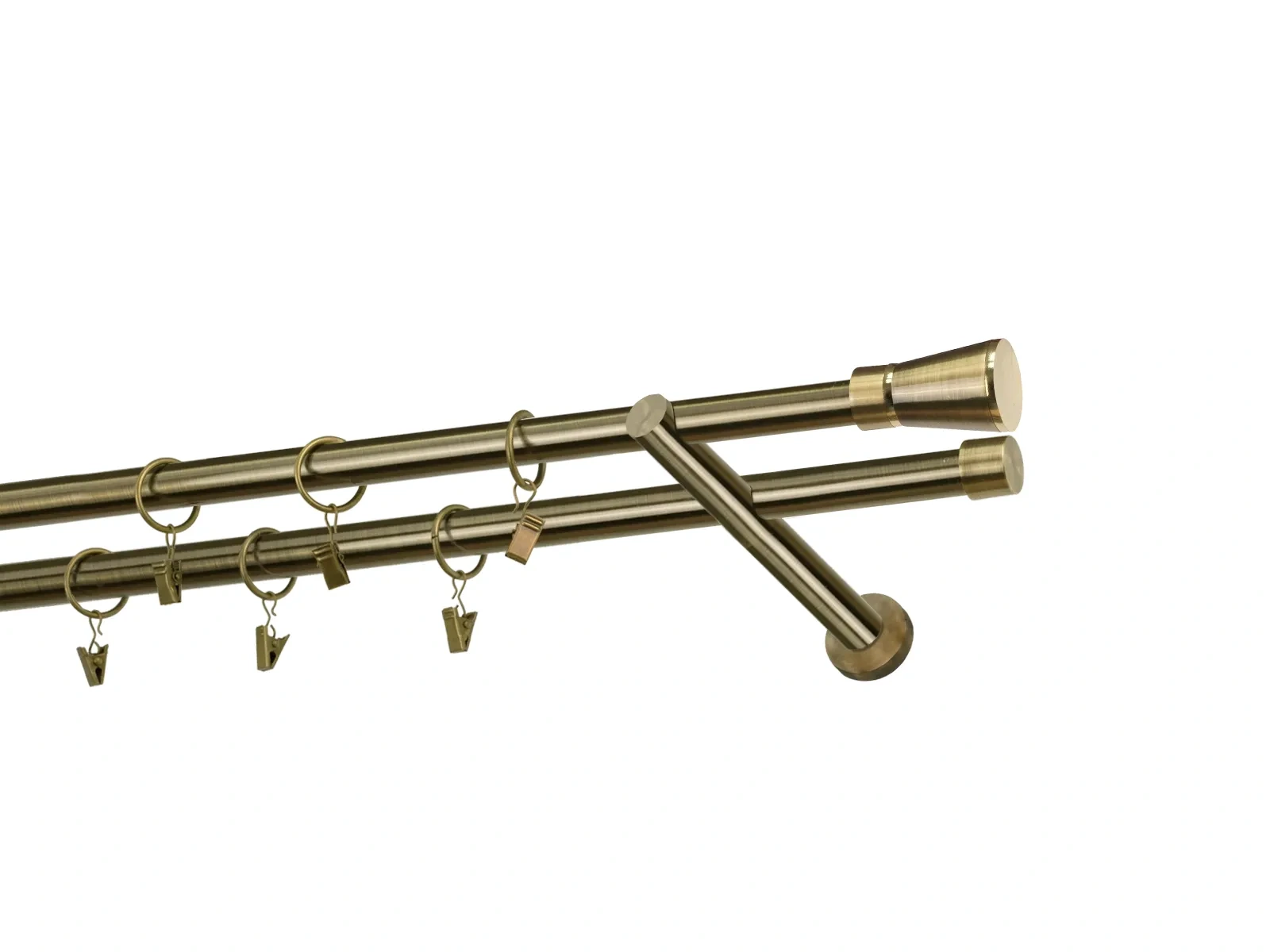 Dvojradová garniža s povrchovou úpravou - odtieň antik (matné zlato). Celokovové garniže s kvalitnou povrchovou úpravou - galvanické pokovovanie. Galvanické pokovovanie zabezpečuje vyššiu povrchovú tvrdosť, zvýšenú dolnosť voči poškriabaniu, hladký povrch. Dodávané sú v kompletoch.