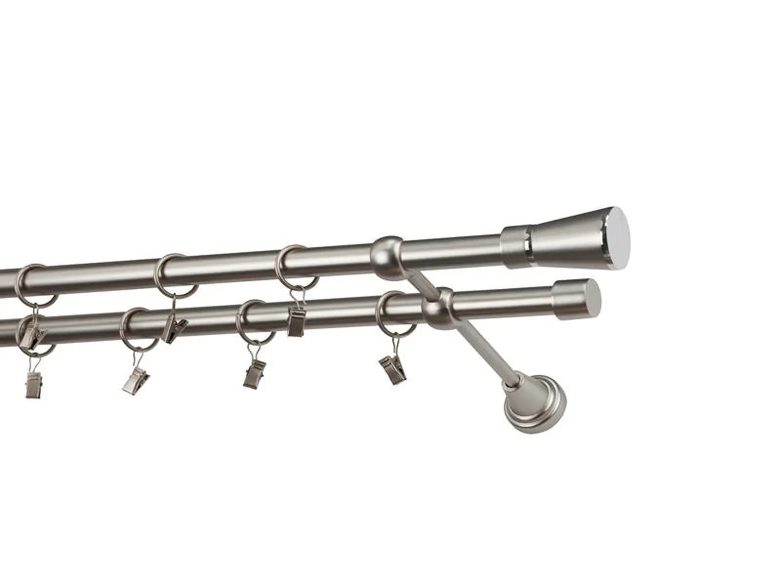 Dvojradová garniža s povrchovou úpravou - odtieň satin-nikel (matné striebro). Celokovové garniže s kvalitnou povrchovou úpravou - galvanické pokovovanie. Galvanické pokovovanie zabezpečuje vyššiu povrchovú tvrdosť, zvýšenú dolnosť voči poškriabaniu, hladký povrch. Dodávané sú v kompletoch.