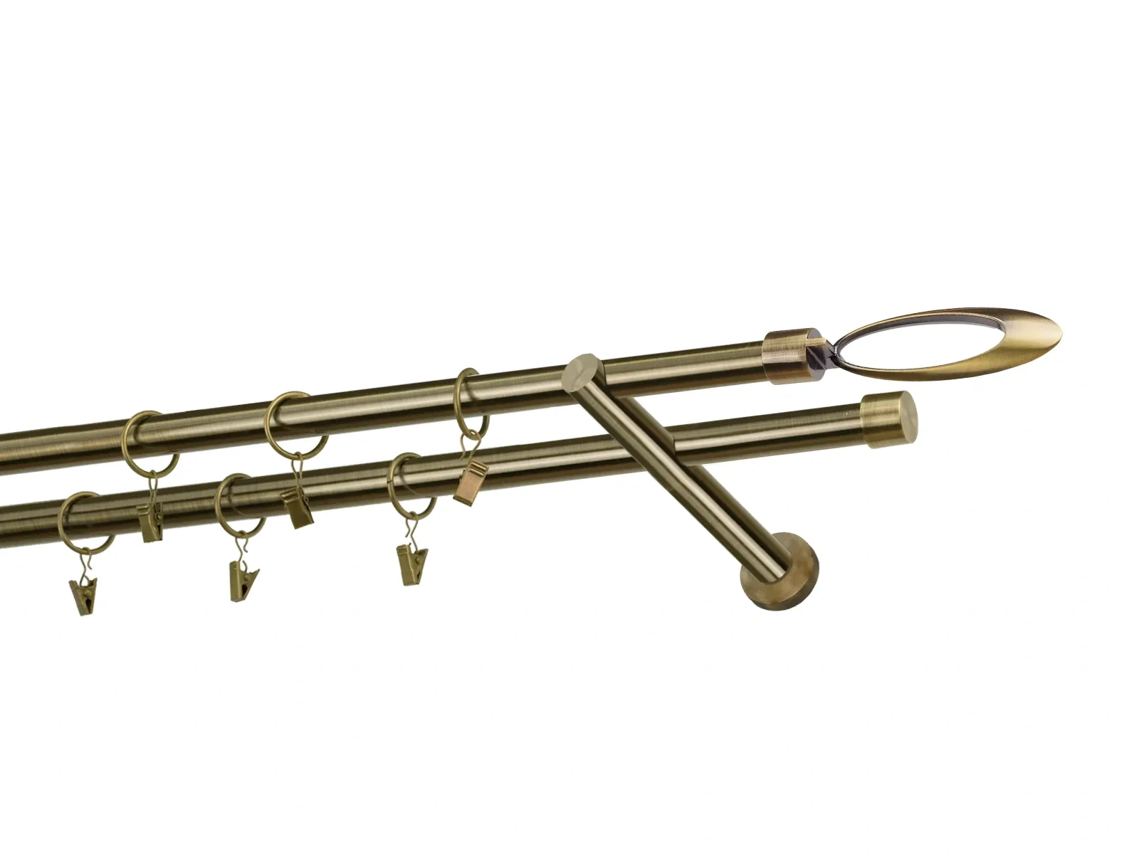 Dĺžka 1600 mm - tyč 19mm - 1600mm - 2ks, držiak dvojitý - 2ks, koncovka - 2ks, koncovka zadná(PULLO) - 2ks, krúžok so štipcom - 30ks (pri výbere parametra príslušenstvo s krúžkami so štipcom), skrutky a hmoždinky na montáž