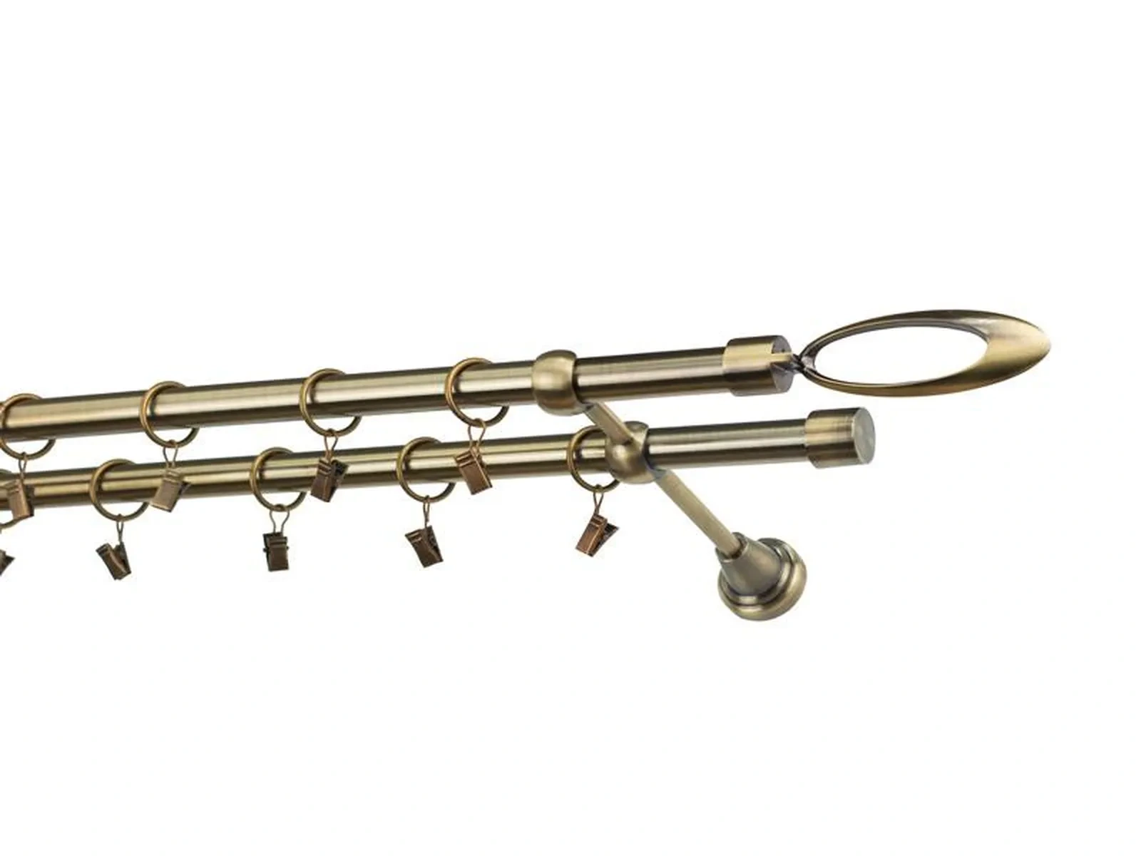 Dĺžka 1200 mm - tyč 19mm - 1200mm - 2ks, držiak dvojitý - 2ks, koncovka - 2ks, koncovka zadná(PULLO) - 2ks, krúžok so štipcom - 22ks (pri výbere parametra príslušenstvo s krúžkami so štipcom), skrutky a hmoždinky na montáž
