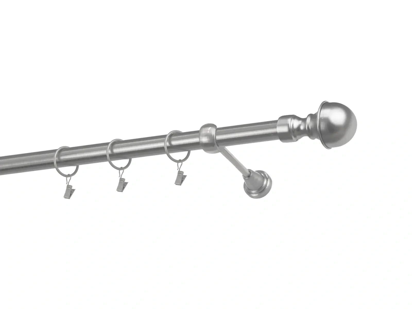 Dĺžka 1200 mm - tyč 25mm - 1200mm - 1ks, držiak - 2ks, koncovka - 2ks, krúžok so štipcom - 11ks (pri výbere parametra príslušenstvo s krúžkami so štipcom), skrutky a hmoždinky na montáž