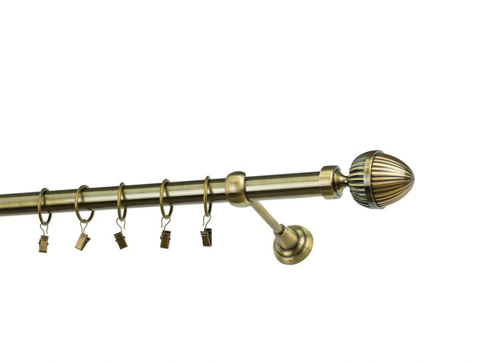 Dĺžka 1200 mm - tyč 25mm - 1200mm - 1ks, držiak - 2ks, koncovka - 2ks, krúžok so štipcom - 11ks (pri výbere parametra príslušenstvo s krúžkami so štipcom), skrutky a hmoždinky na montáž