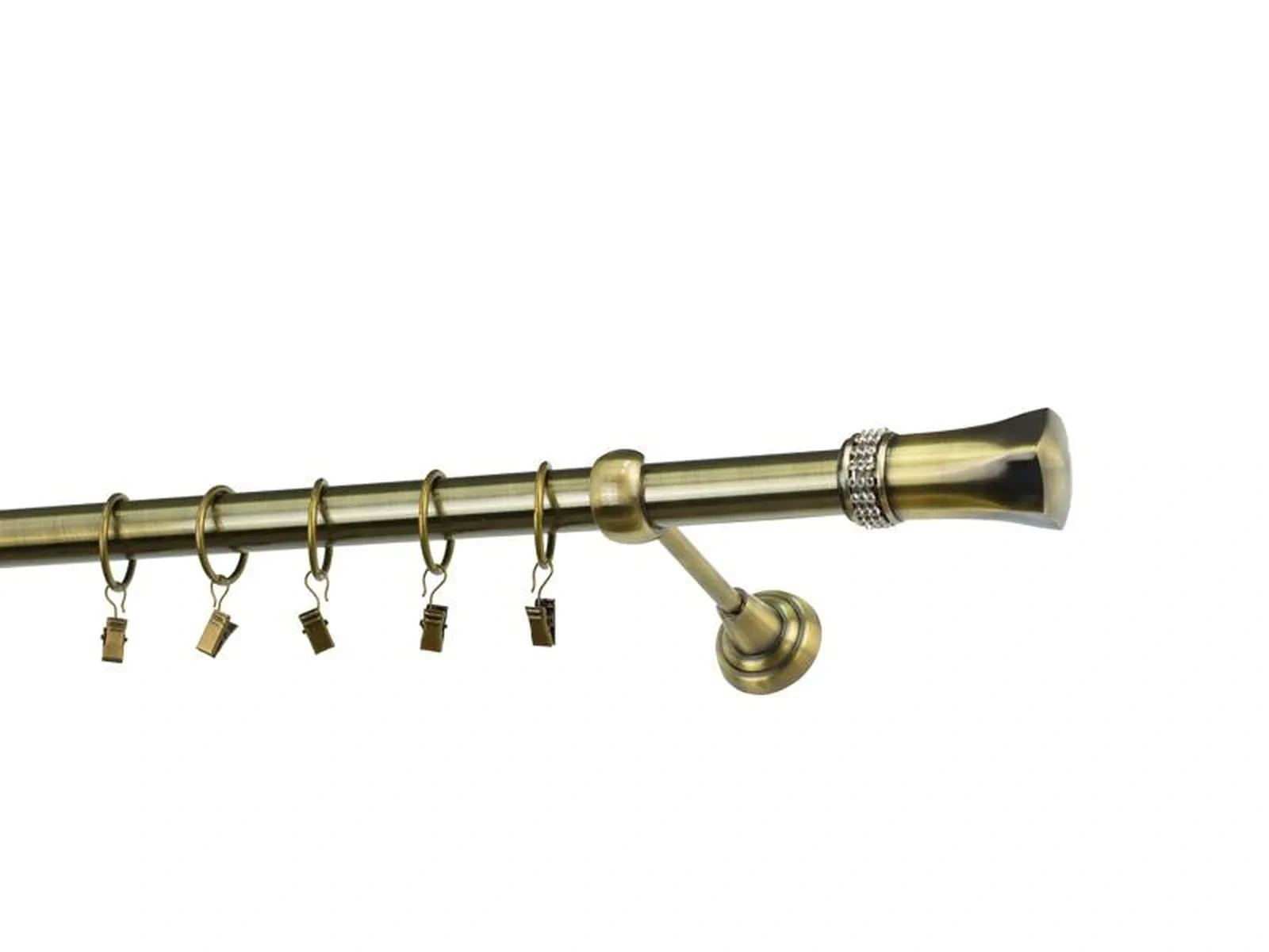 Dĺžka 1200 mm - tyč 25mm - 1200mm - 1ks, držiak - 2ks, koncovka - 2ks, krúžok so štipcom - 11ks (pri výbere parametra príslušenstvo s krúžkami so štipcom), skrutky a hmoždinky na montáž