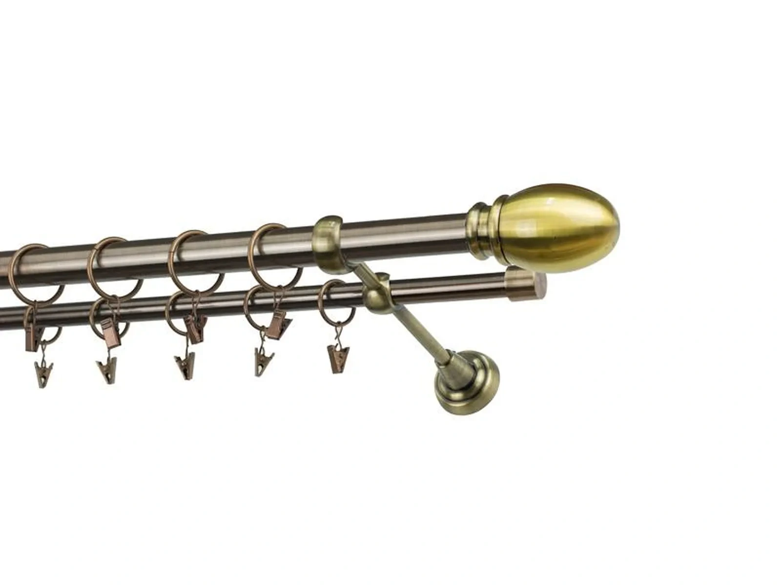 Dvojradová garniža s povrchovou úpravou - odtieň antik (matné zlato). Celokovové garniže s kvalitnou povrchovou úpravou - galvanické pokovovanie. Galvanické pokovovanie zabezpečuje vyššiu povrchovú tvrdosť, zvýšenú dolnosť voči poškriabaniu, hladký povrch. Dodávané sú v kompletoch.