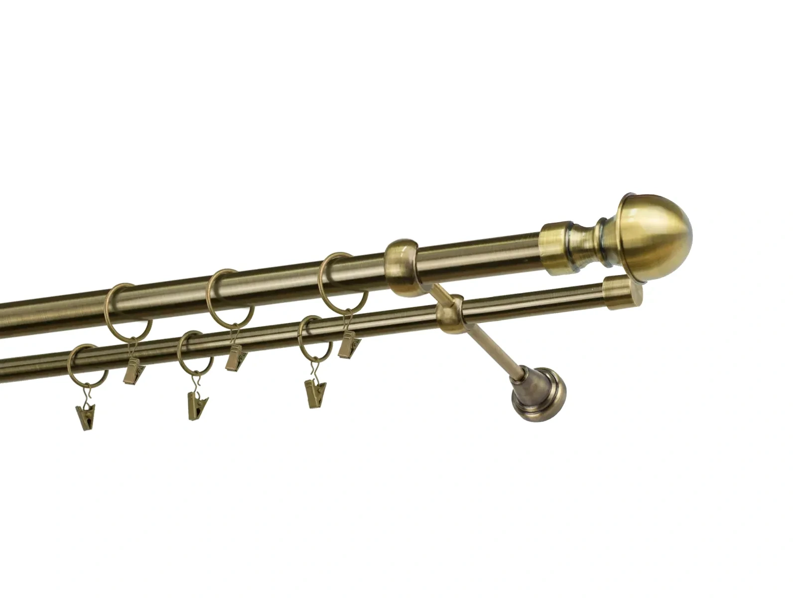 Dvojradová garniža s povrchovou úpravou - odtieň antik (matné zlato). Celokovové garniže s kvalitnou povrchovou úpravou - galvanické pokovovanie. Galvanické pokovovanie zabezpečuje vyššiu povrchovú tvrdosť, zvýšenú dolnosť voči poškriabaniu, hladký povrch. Dodávané sú v kompletoch.