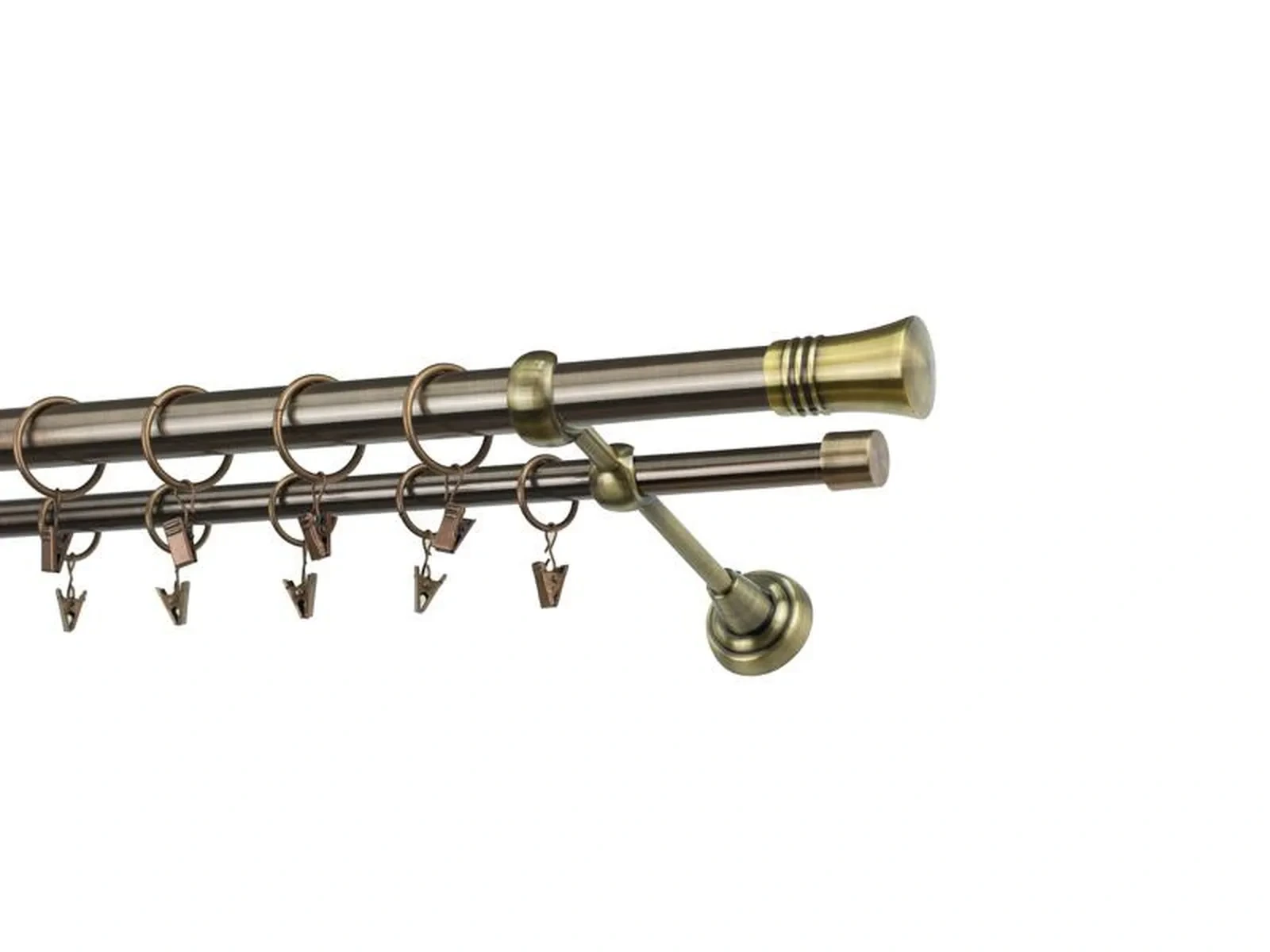 Dvojradová garniža s povrchovou úpravou - odtieň antik (matné zlato). Celokovové garniže s kvalitnou povrchovou úpravou - galvanické pokovovanie. Galvanické pokovovanie zabezpečuje vyššiu povrchovú tvrdosť, zvýšenú dolnosť voči poškriabaniu, hladký povrch. Dodávané sú v kompletoch.