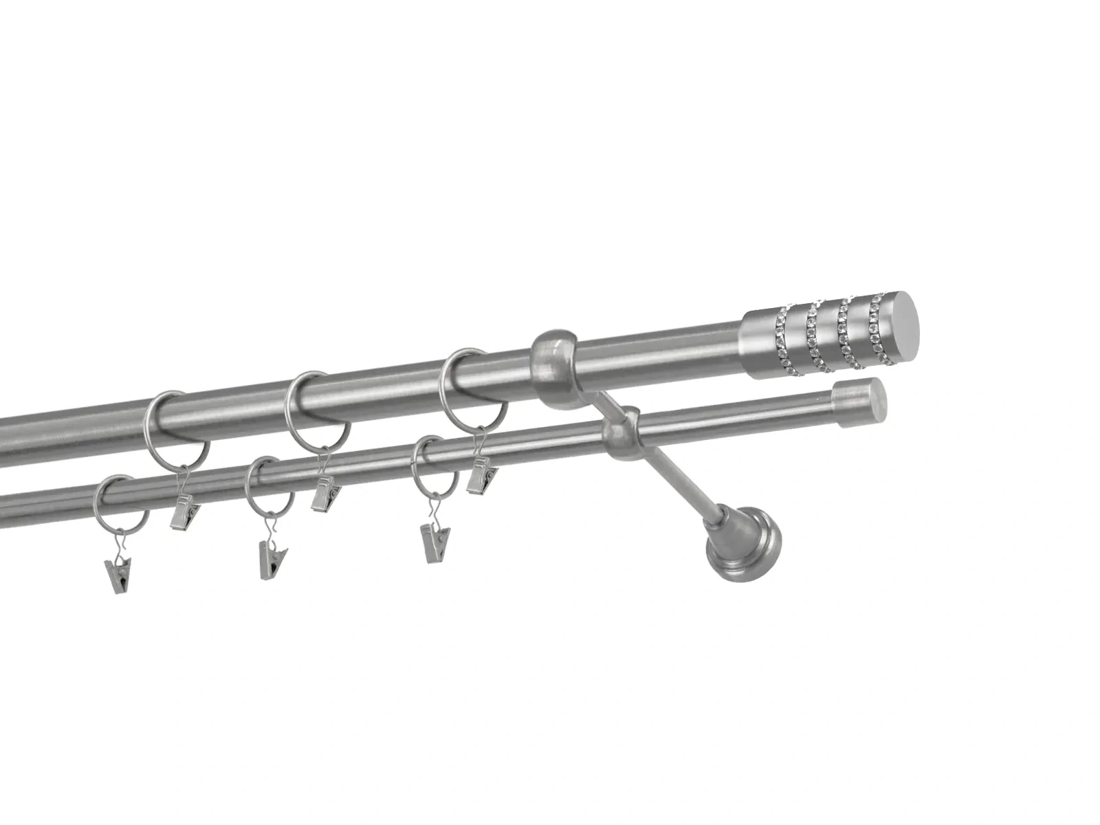 Dvojradová garniža s povrchovou úpravou - odtieň satin-nikel (matné striebro). Celokovové garniže s kvalitnou povrchovou úpravou - galvanické pokovovanie. Galvanické pokovovanie zabezpečuje vyššiu povrchovú tvrdosť, zvýšenú dolnosť voči poškriabaniu, hladký povrch. Dodávané sú v kompletoch.