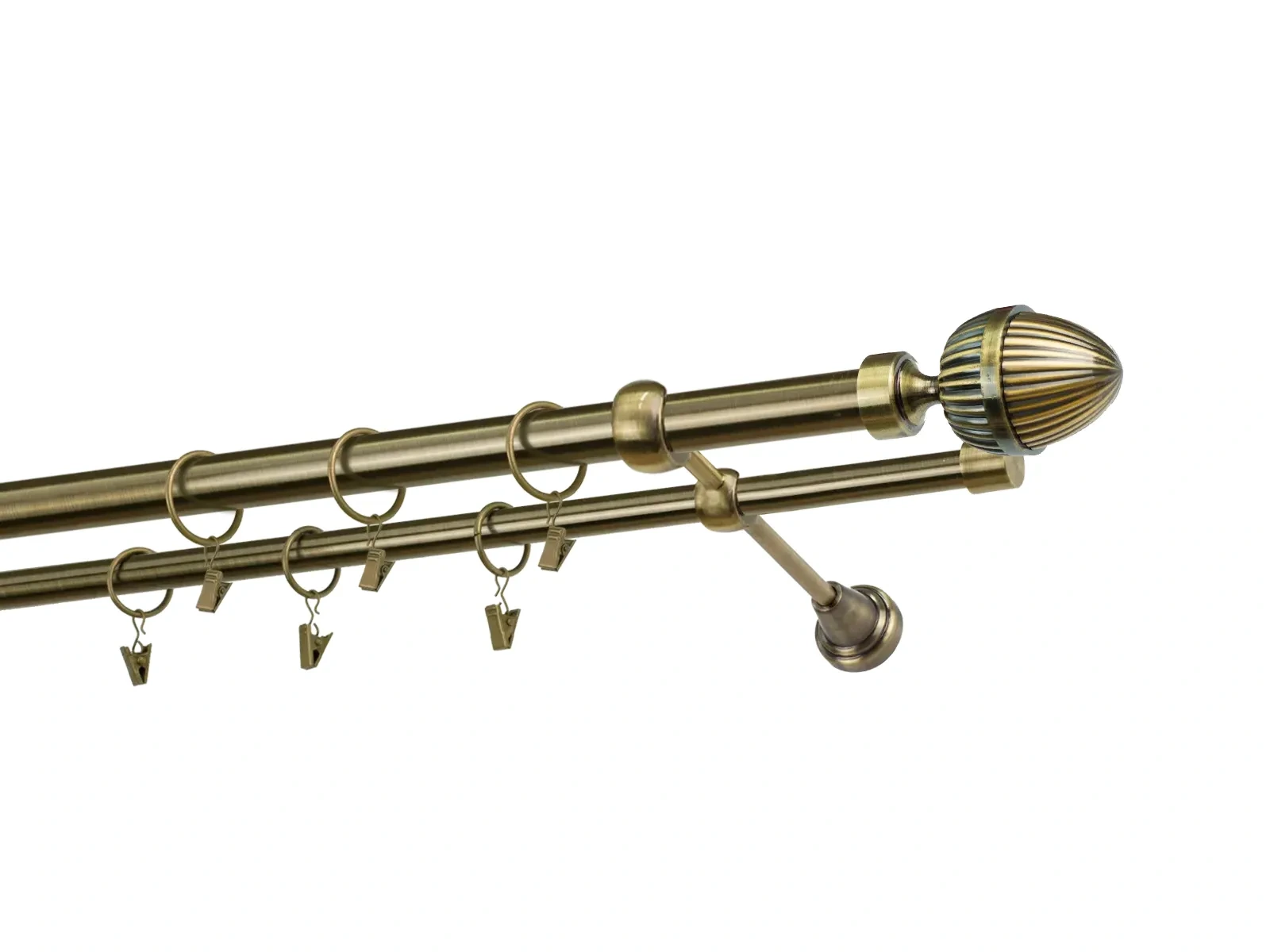 Dvojradová garniža s povrchovou úpravou - odtieň antik (matné zlato). Celokovové garniže s kvalitnou povrchovou úpravou - galvanické pokovovanie. Galvanické pokovovanie zabezpečuje vyššiu povrchovú tvrdosť, zvýšenú dolnosť voči poškriabaniu, hladký povrch. Dodávané sú v kompletoch.