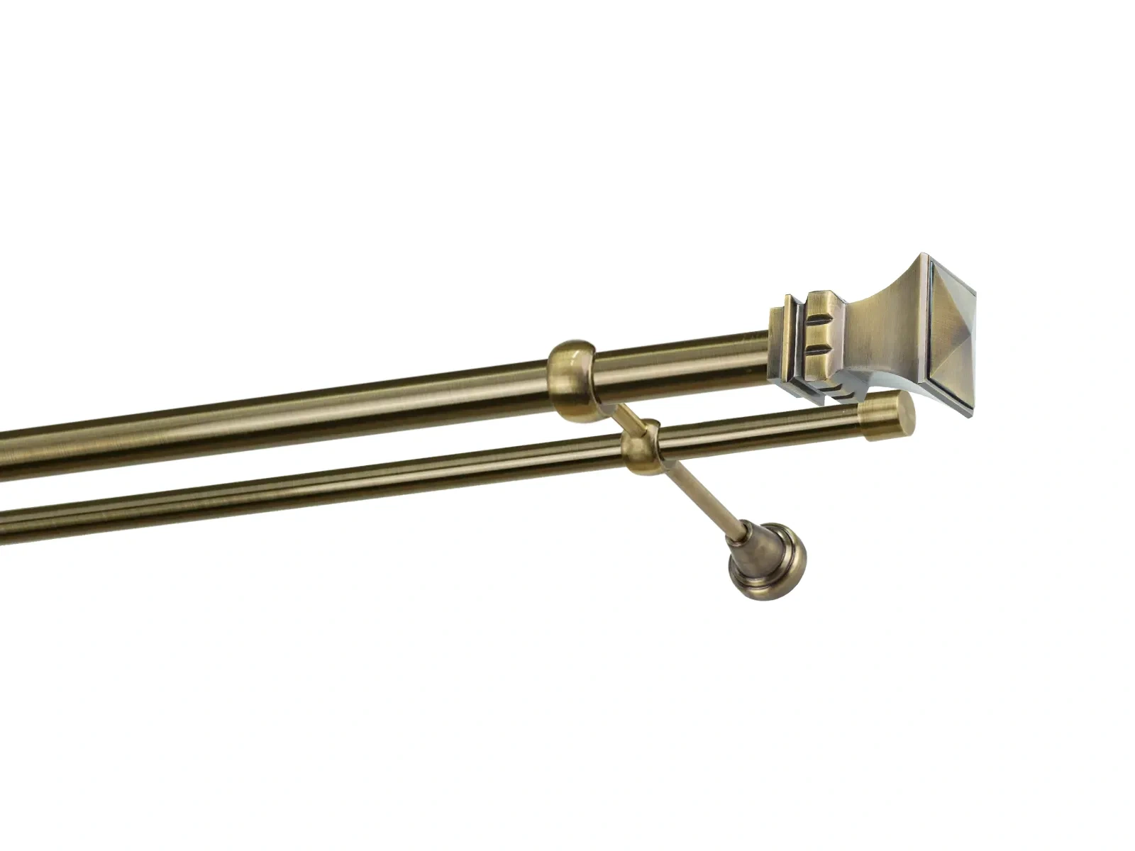 Dvojradová garniža s povrchovou úpravou - odtieň antik (matné zlato). Celokovové garniže s kvalitnou povrchovou úpravou - galvanické pokovovanie. Galvanické pokovovanie zabezpečuje vyššiu povrchovú tvrdosť, zvýšenú dolnosť voči poškriabaniu, hladký povrch. Dodávané sú v kompletoch.