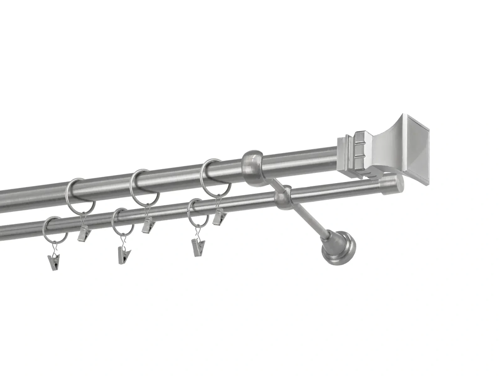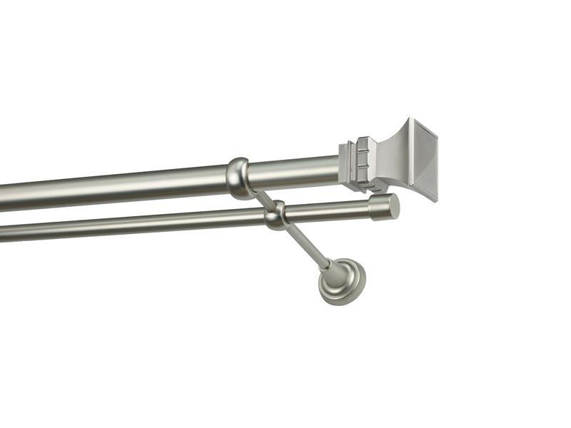 Dvojradová garniža s povrchovou úpravou - odtieň satin-nikel (matné striebro). Celokovové garniže s kvalitnou povrchovou úpravou - galvanické pokovovanie. Galvanické pokovovanie zabezpečuje vyššiu povrchovú tvrdosť, zvýšenú dolnosť voči poškriabaniu, hladký povrch. Dodávané sú v kompletoch.
