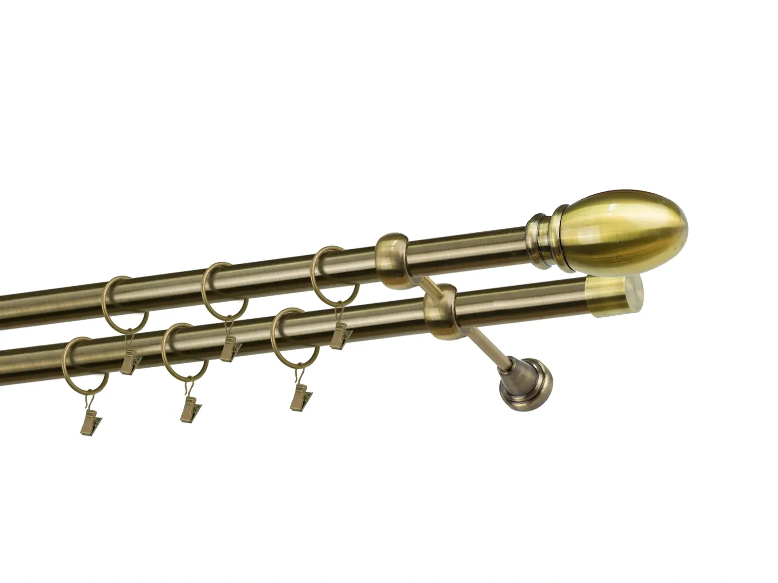 Dvojradová garniža s povrchovou úpravou - odtieň antik (matné zlato). Celokovové garniže s kvalitnou povrchovou úpravou - galvanické pokovovanie. Galvanické pokovovanie zabezpečuje vyššiu povrchovú tvrdosť, zvýšenú dolnosť voči poškriabaniu, hladký povrch. Dodávané sú v kompletoch.