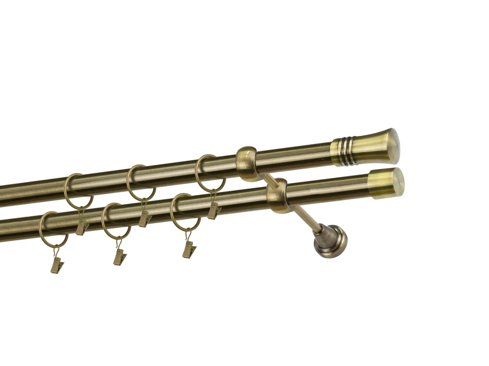 Dvojradová garniža s povrchovou úpravou - odtieň antik (matné zlato). Celokovové garniže s kvalitnou povrchovou úpravou - galvanické pokovovanie. Galvanické pokovovanie zabezpečuje vyššiu povrchovú tvrdosť, zvýšenú dolnosť voči poškriabaniu, hladký povrch. Dodávané sú v kompletoch.