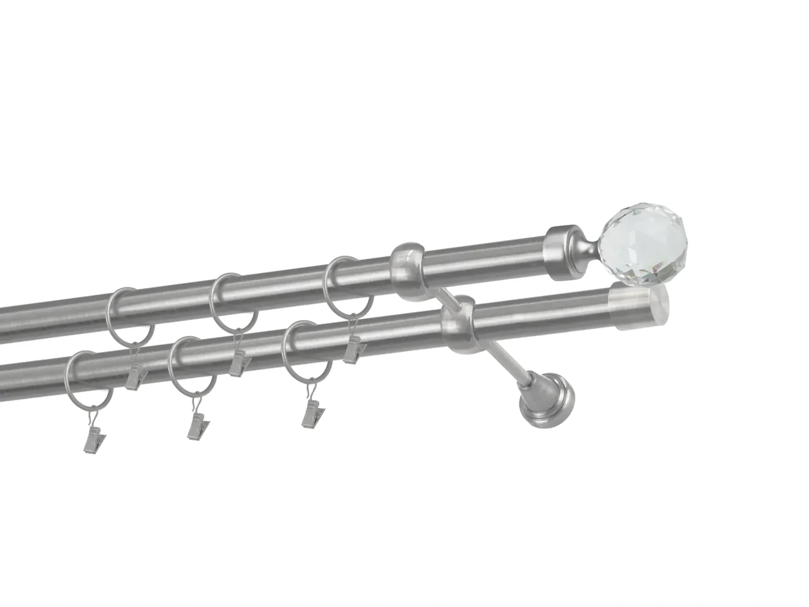 Dvojradová garniža s povrchovou úpravou - odtieň satin-nikel (matné striebro). Celokovové garniže s kvalitnou povrchovou úpravou - galvanické pokovovanie. Galvanické pokovovanie zabezpečuje vyššiu povrchovú tvrdosť, zvýšenú dolnosť voči poškriabaniu, hladký povrch. Dodávané sú v kompletoch.