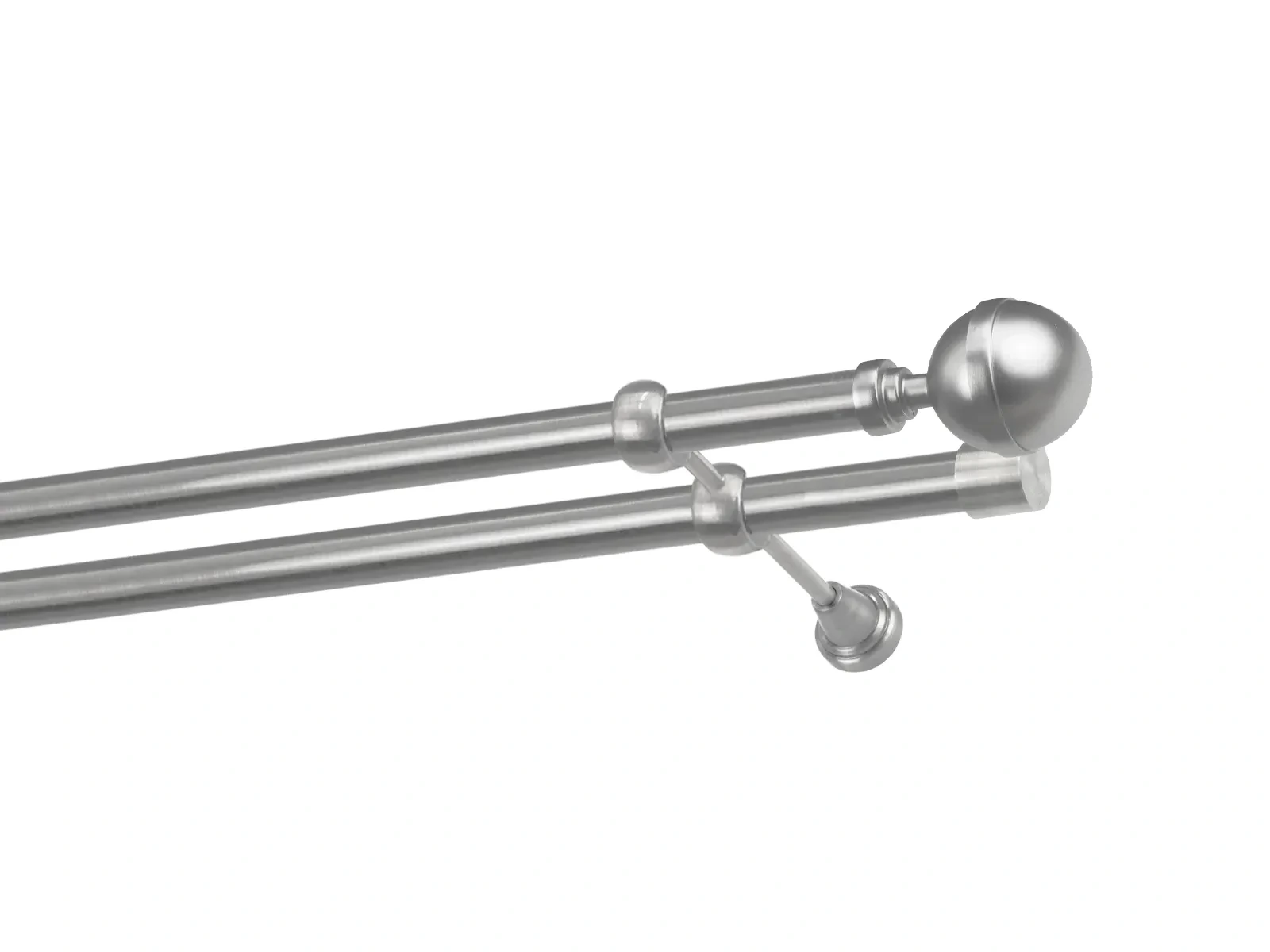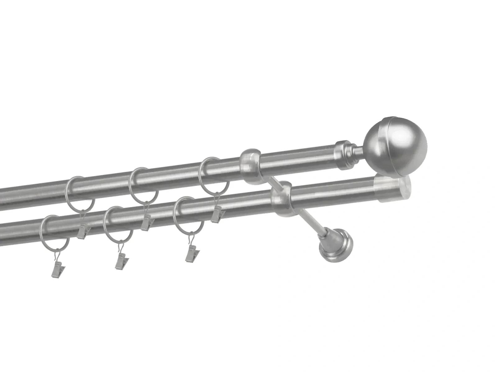 Dvojradová garniža s povrchovou úpravou - odtieň satin-nikel (matné striebro). Celokovové garniže s kvalitnou povrchovou úpravou - galvanické pokovovanie. Galvanické pokovovanie zabezpečuje vyššiu povrchovú tvrdosť, zvýšenú dolnosť voči poškriabaniu, hladký povrch. Dodávané sú v kompletoch.