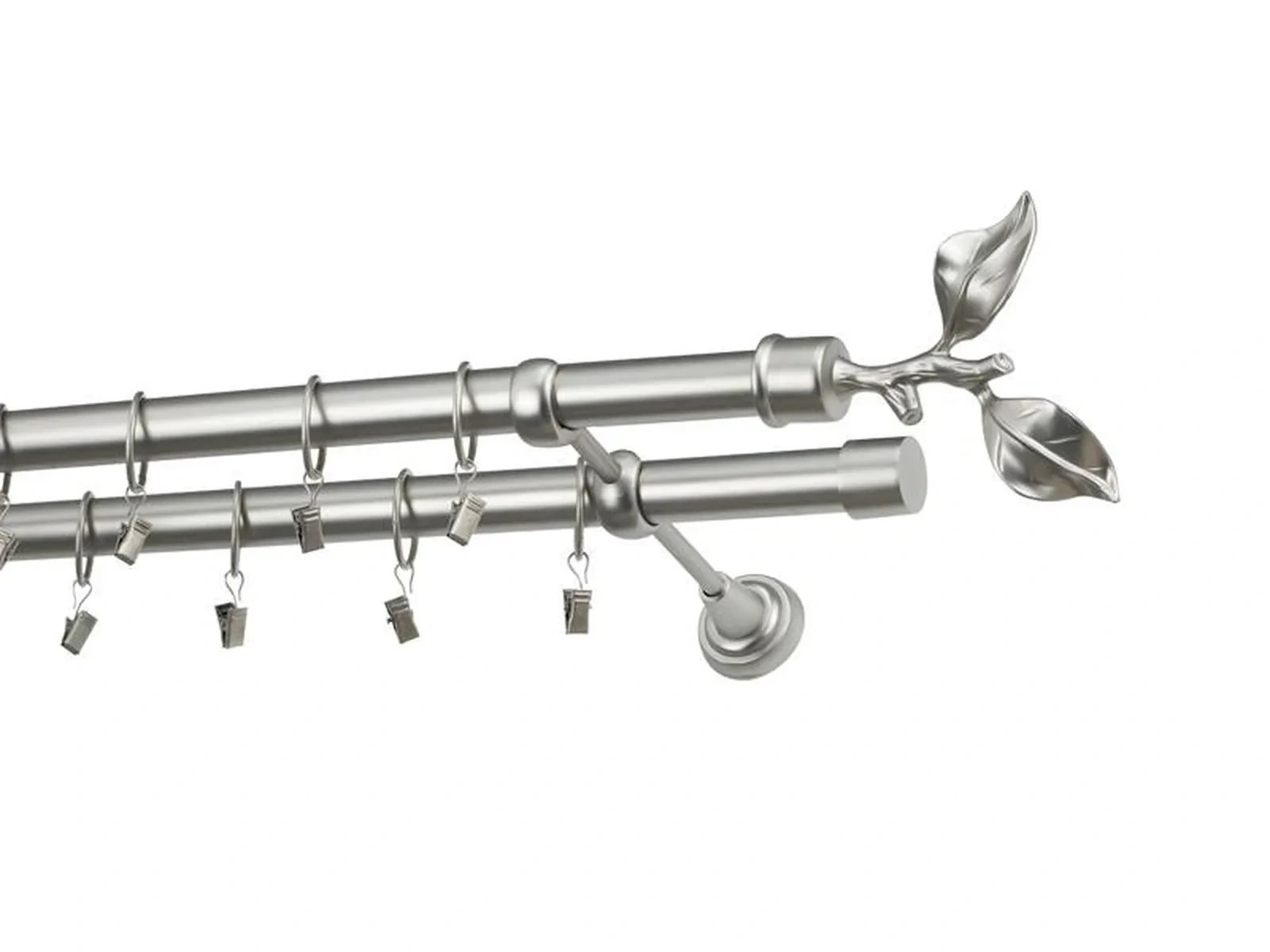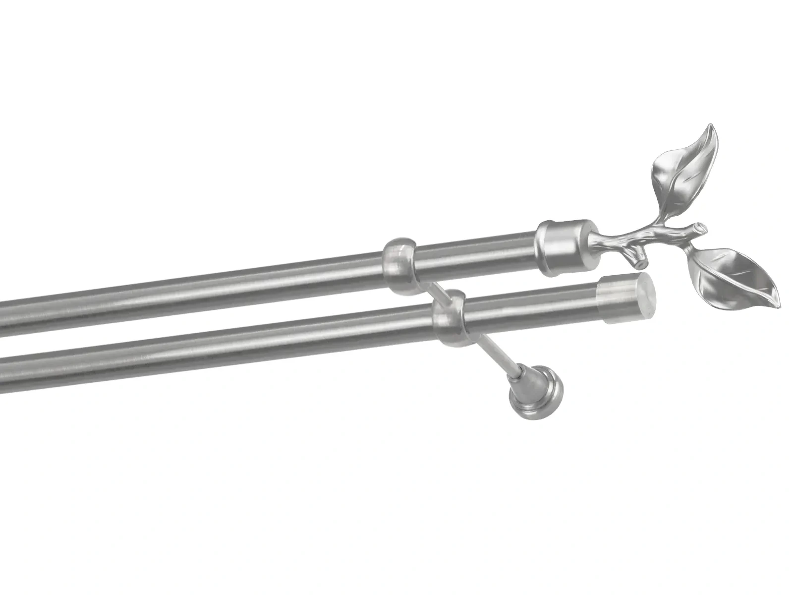Dvojradová garniža s povrchovou úpravou - odtieň satin-nikel (matné striebro). Celokovové garniže s kvalitnou povrchovou úpravou - galvanické pokovovanie. Galvanické pokovovanie zabezpečuje vyššiu povrchovú tvrdosť, zvýšenú dolnosť voči poškriabaniu, hladký povrch. Dodávané sú v kompletoch.