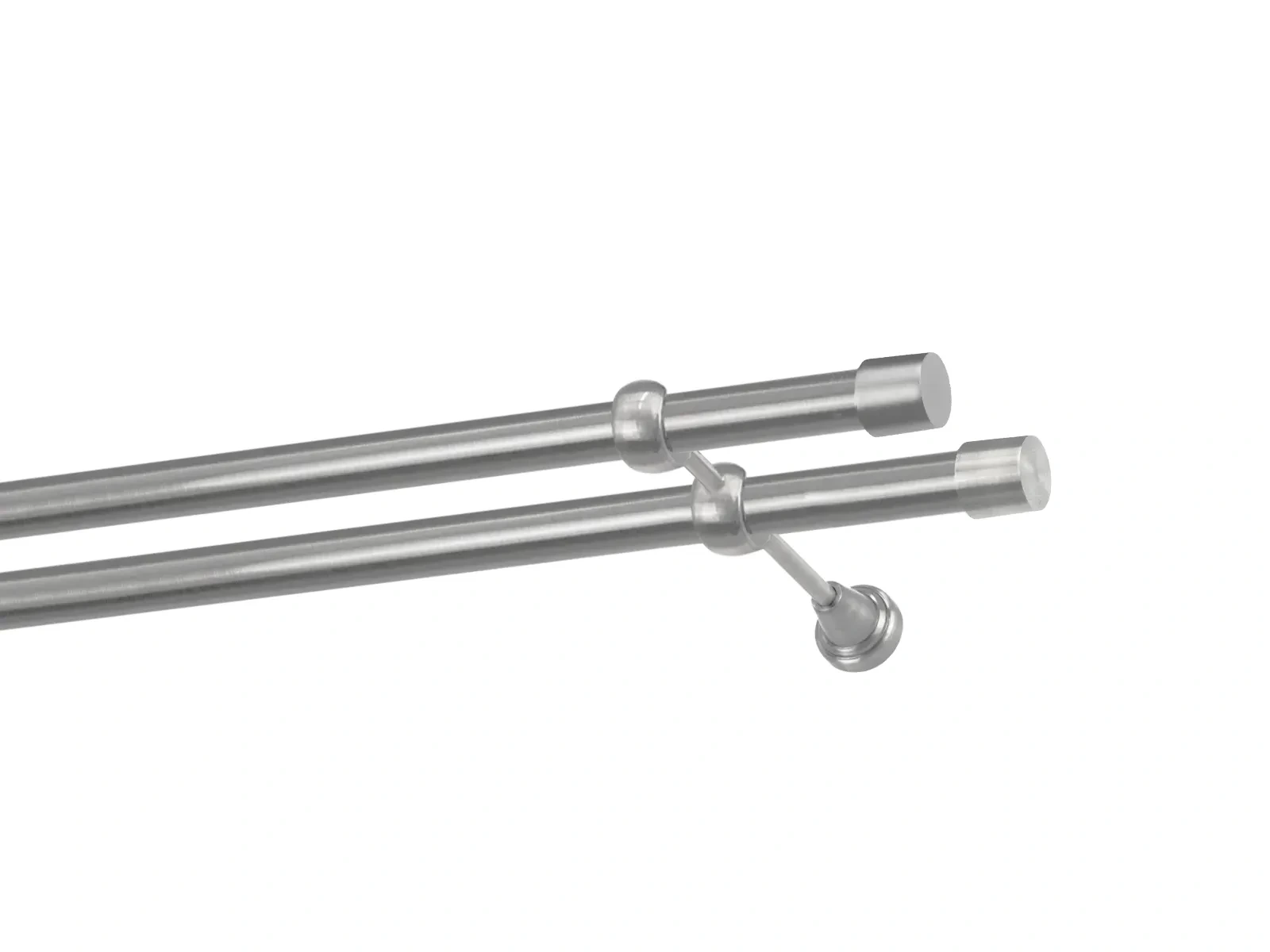 Dvojradová garniža s povrchovou úpravou - odtieň satin-nikel (matné striebro). Celokovové garniže s kvalitnou povrchovou úpravou - galvanické pokovovanie. Galvanické pokovovanie zabezpečuje vyššiu povrchovú tvrdosť, zvýšenú dolnosť voči poškriabaniu, hladký povrch. Dodávané sú v kompletoch.