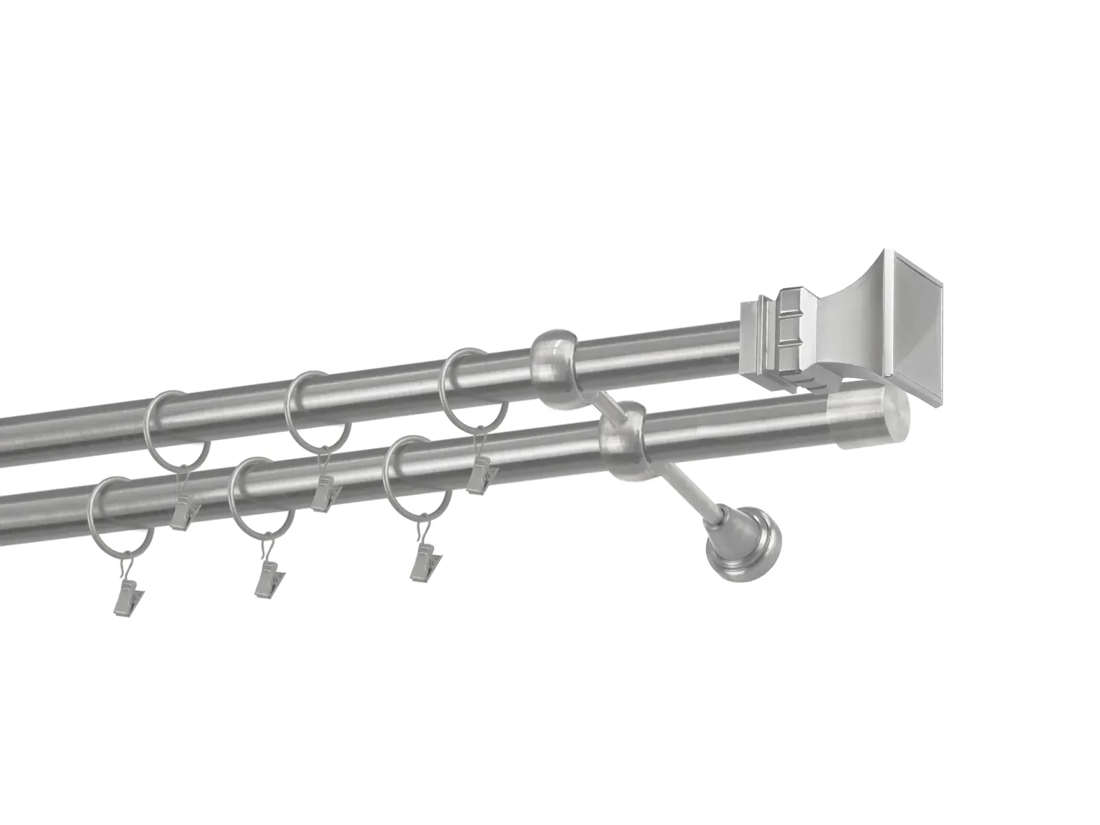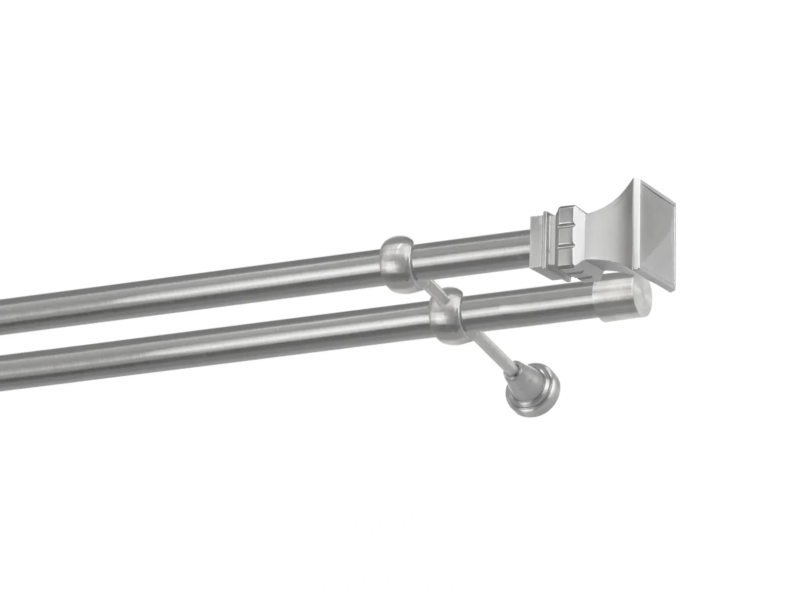 Dvojradová garniža s povrchovou úpravou - odtieň satin-nikel (matné striebro). Celokovové garniže s kvalitnou povrchovou úpravou - galvanické pokovovanie. Galvanické pokovovanie zabezpečuje vyššiu povrchovú tvrdosť, zvýšenú dolnosť voči poškriabaniu, hladký povrch. Dodávané sú v kompletoch.