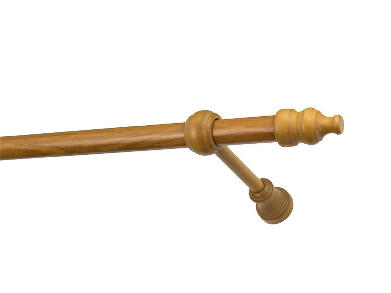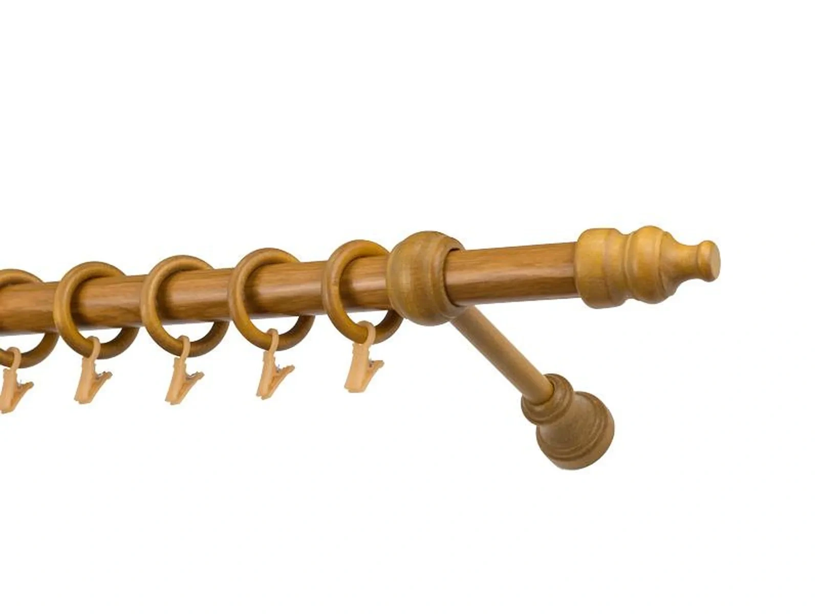 Koncovky, držiaky a krúžky sú drevené. Tyč je drevená (vyrábaná technológiou ako europrofily pre okna - čo eliminuje ohýbanie vplyvom tepla) a je potiahnutá odolnou drevoimitačnou fóliou. Dodávané sú v kompletoch.
